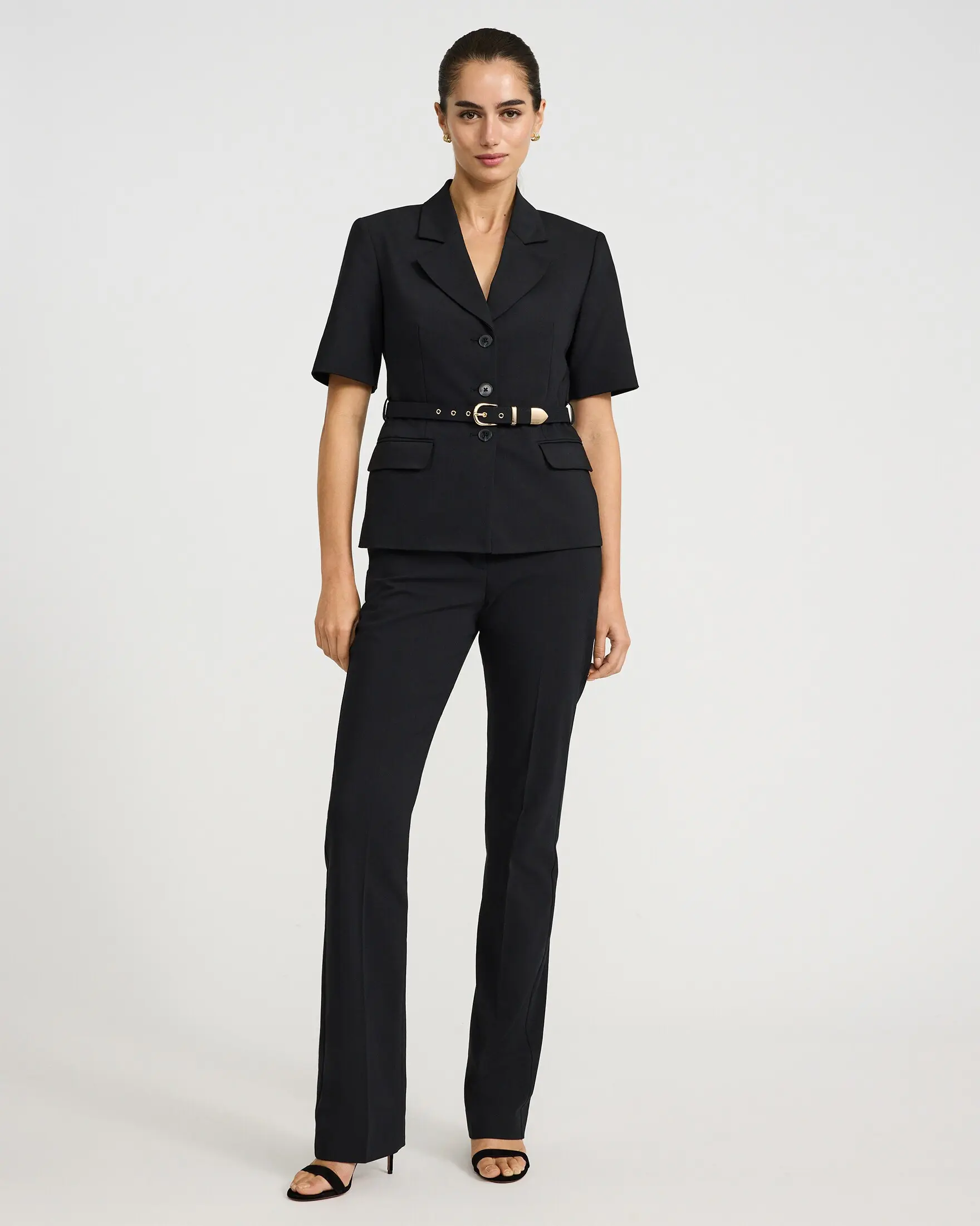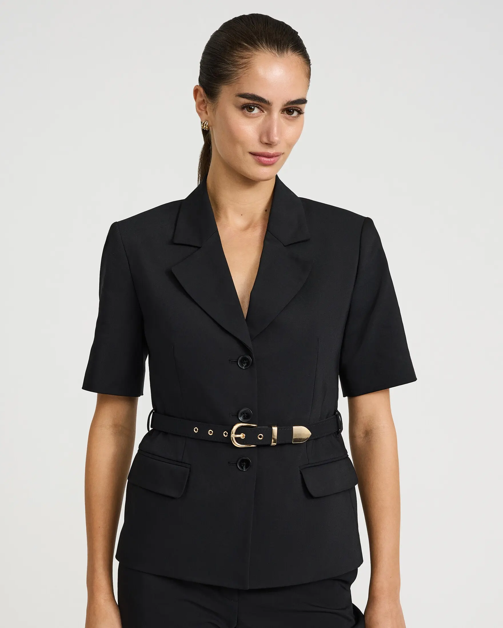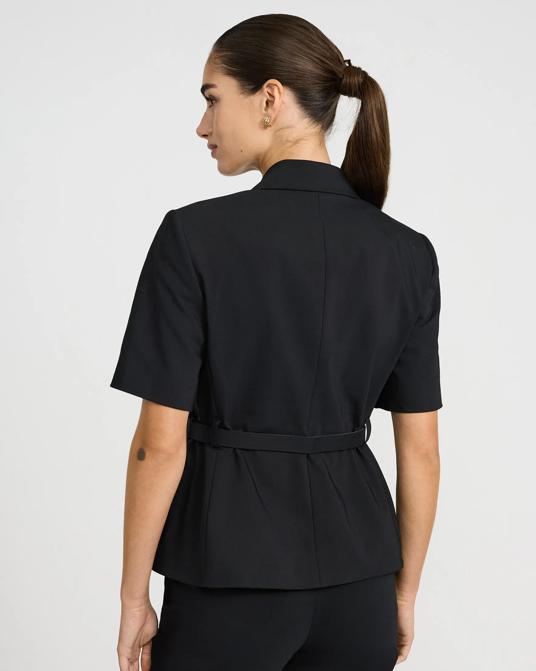 A stylish blazer expertly tailored to hug every curve, complete with a button front and pockets. This chic jacket features a waist belt that flatters your figure. Pair with the matching pant to complete your look. Pair with: #07243098, #07661166, #09193109, #08622565, #08632507