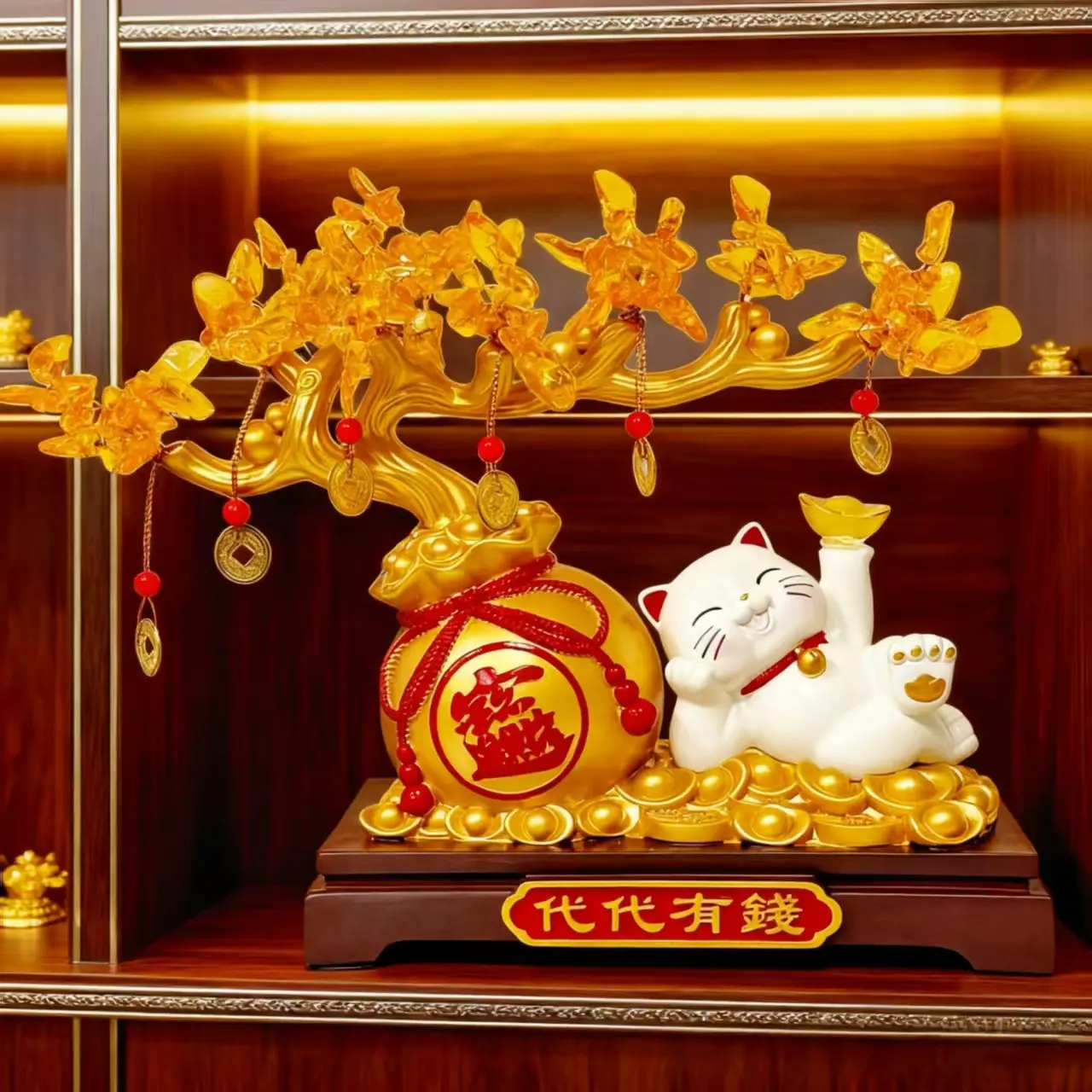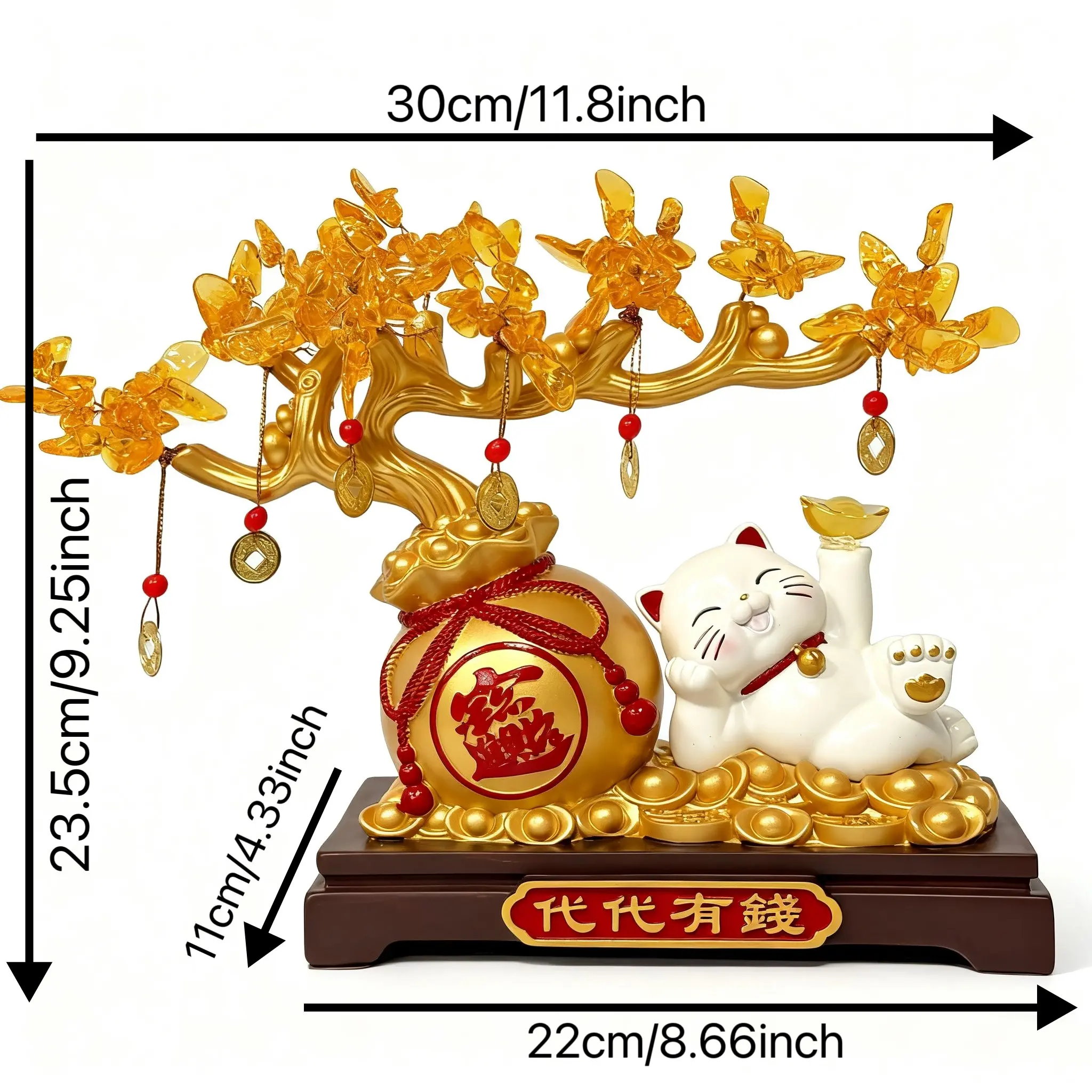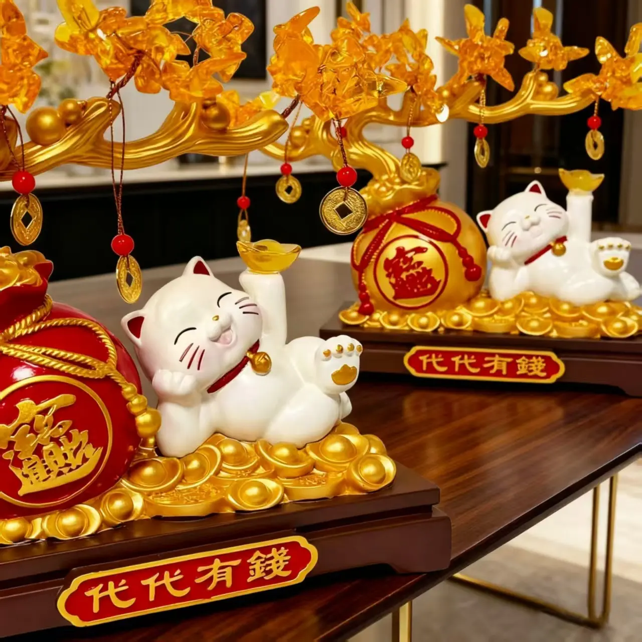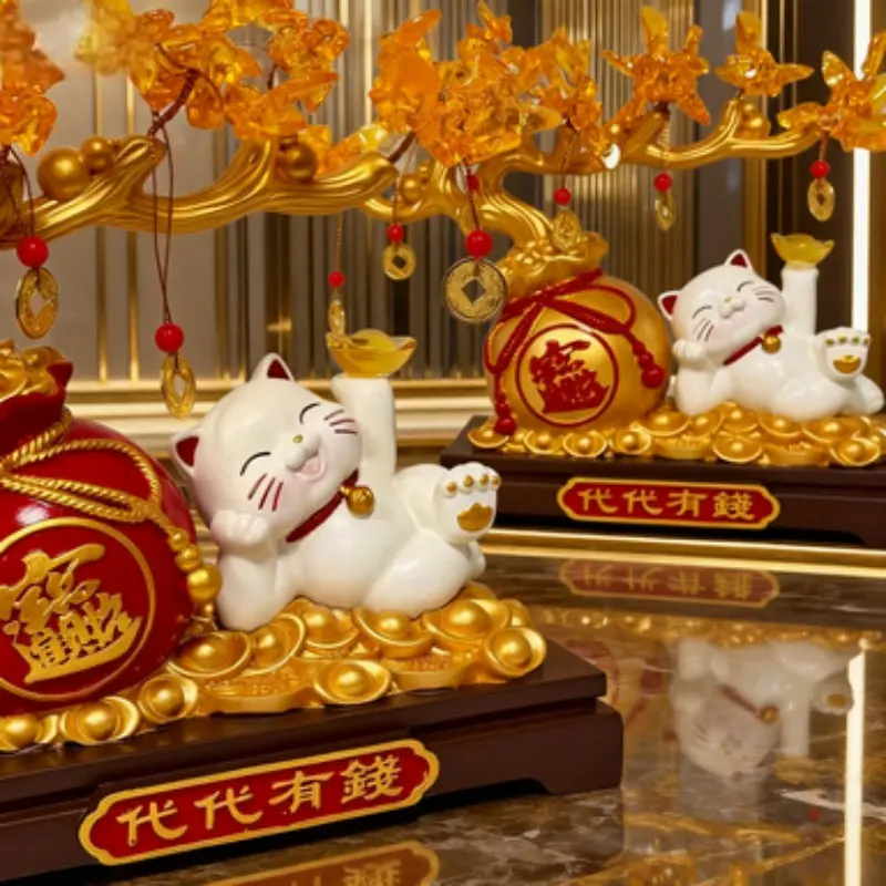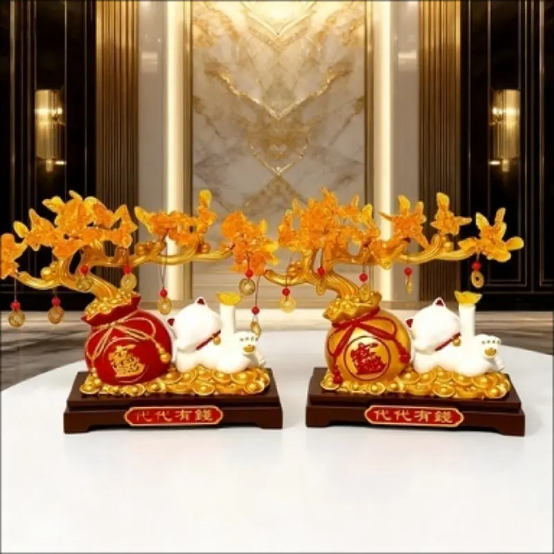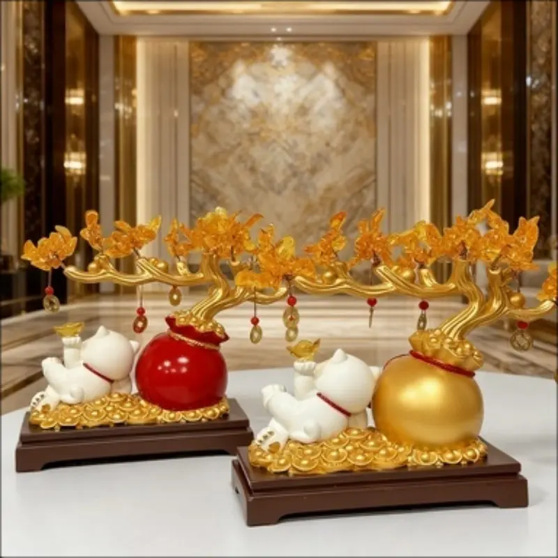 Lucky Cat Gold Branch Ornament, Home Decor for Living Room, Entryway, Study, Shop Front Desk, Moving In, Business Gift, Festival Present
