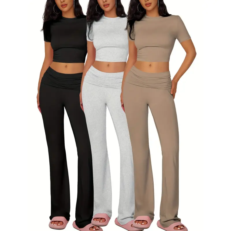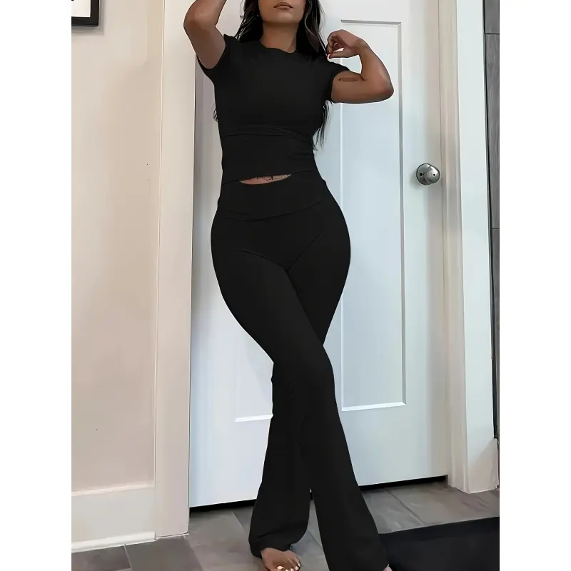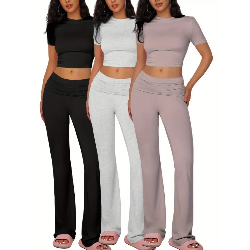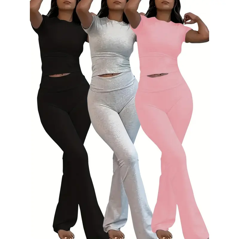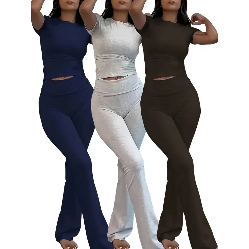 PINSPARK 2 Piece Sets for Women Soft Short Sleeve Matching Lounge Set Wide Leg Pants Tracksuit Travel Summe Travel Kitr Outfits 2025