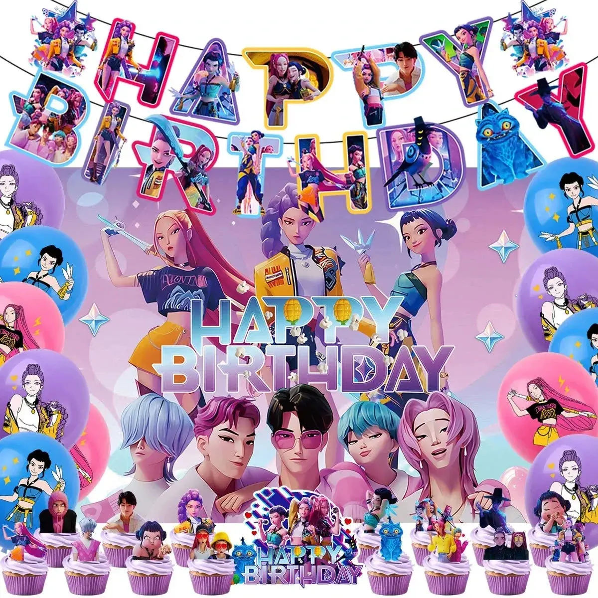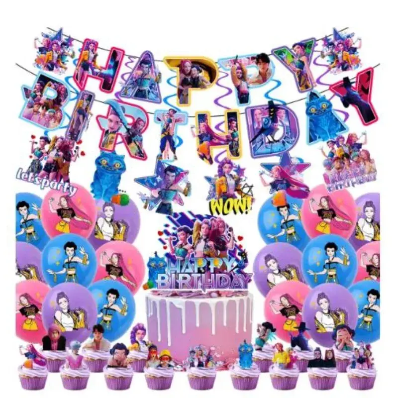 New KPo Witch Hunt Theme Birthday Party Banner Balloon, Rumi Mira Zoey Birthday Balloon, Cake Background Party Decoration Toy