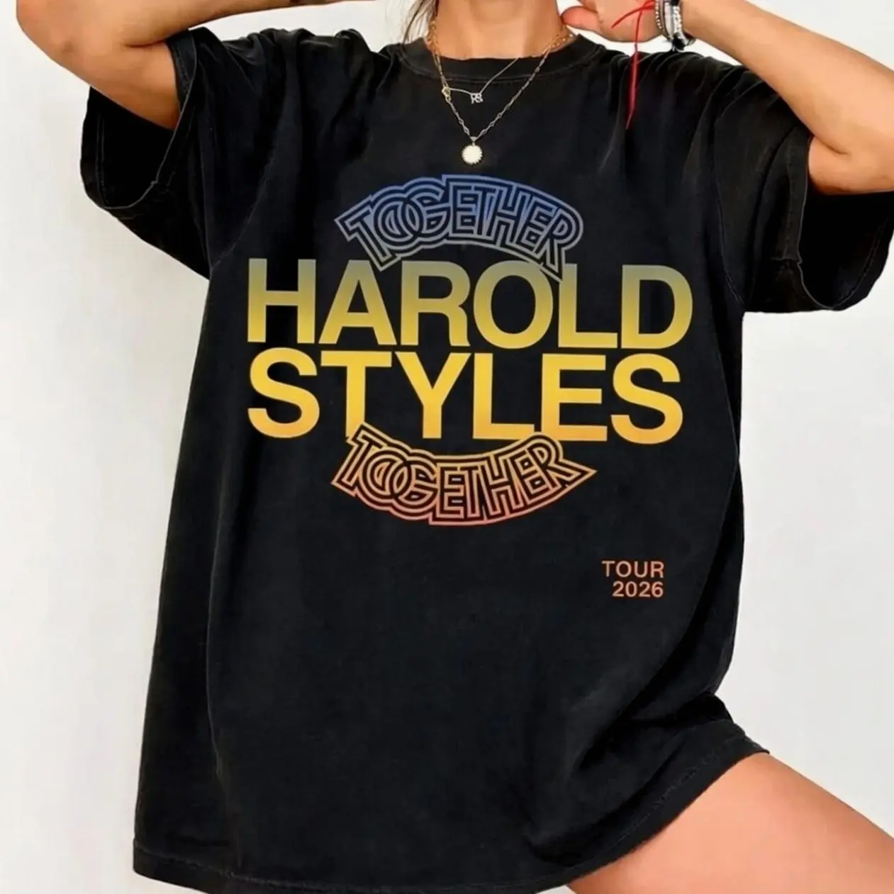 5. Harold Styles Together Tour 2026 Shirt, Vintage Gradient Yellow Black Unisex Oversized Tee, Perfect Gift for Music Fans A