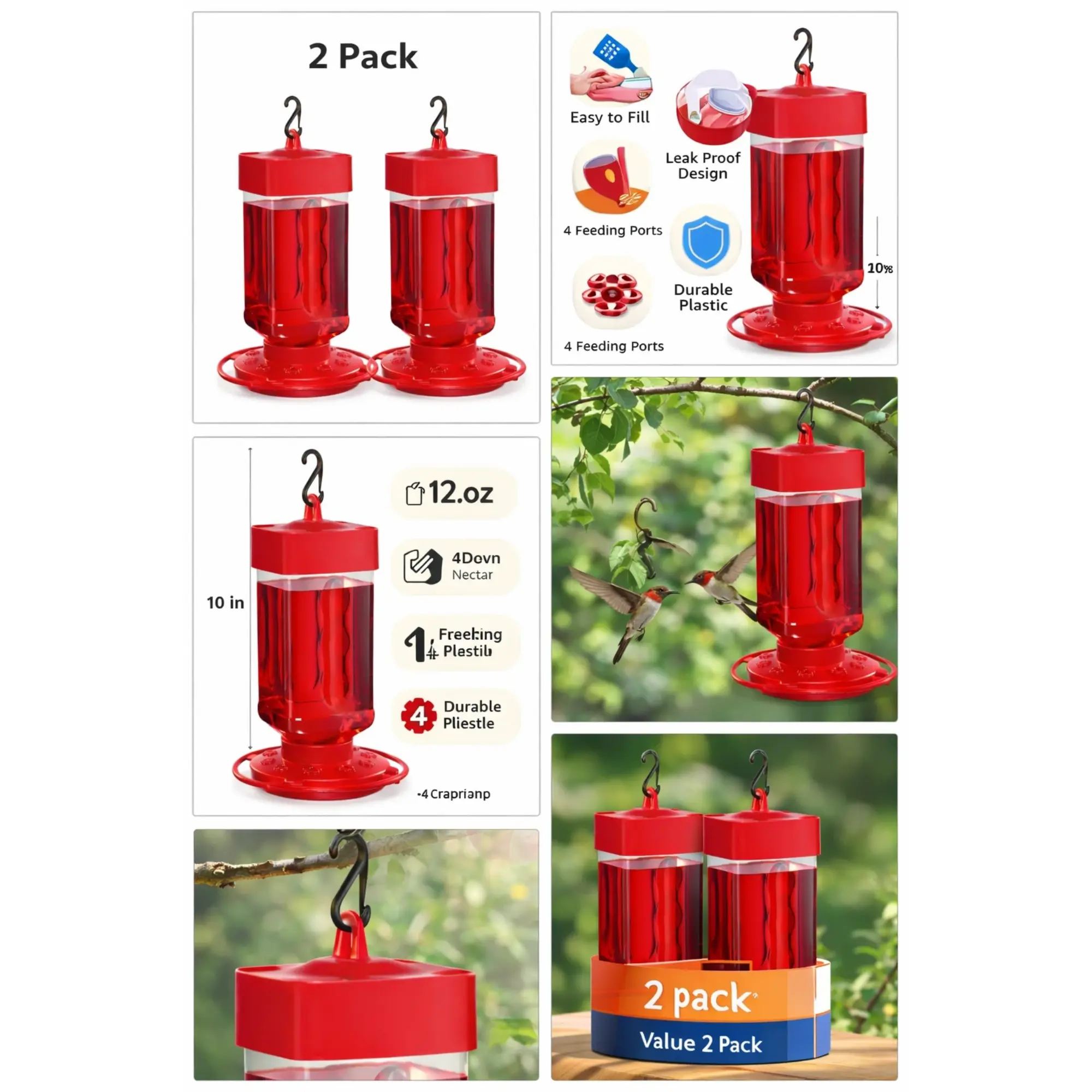 First Nature 32oz Hummingbird Feeder Red 10 Port Wide Mouth Easy Clean 2 Pack
