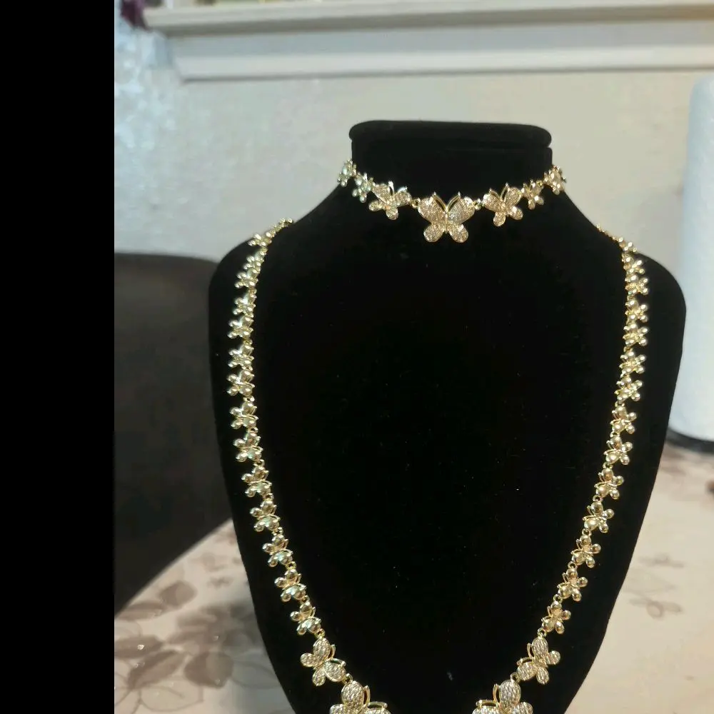 ·Gold Tone Jewelry: This necklace set features a delicate butterfly design, perfect for special occasions. The gold tone adds a touch of elegance to any outfit.
