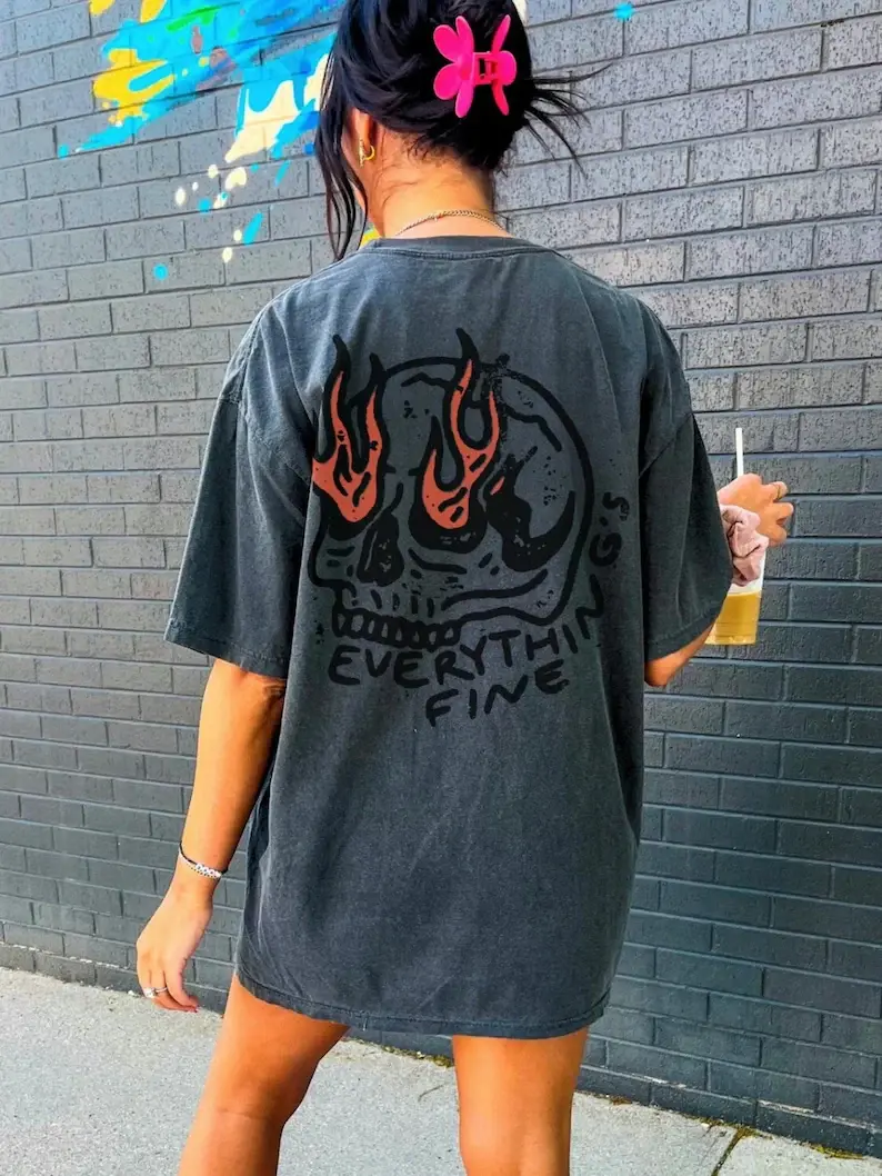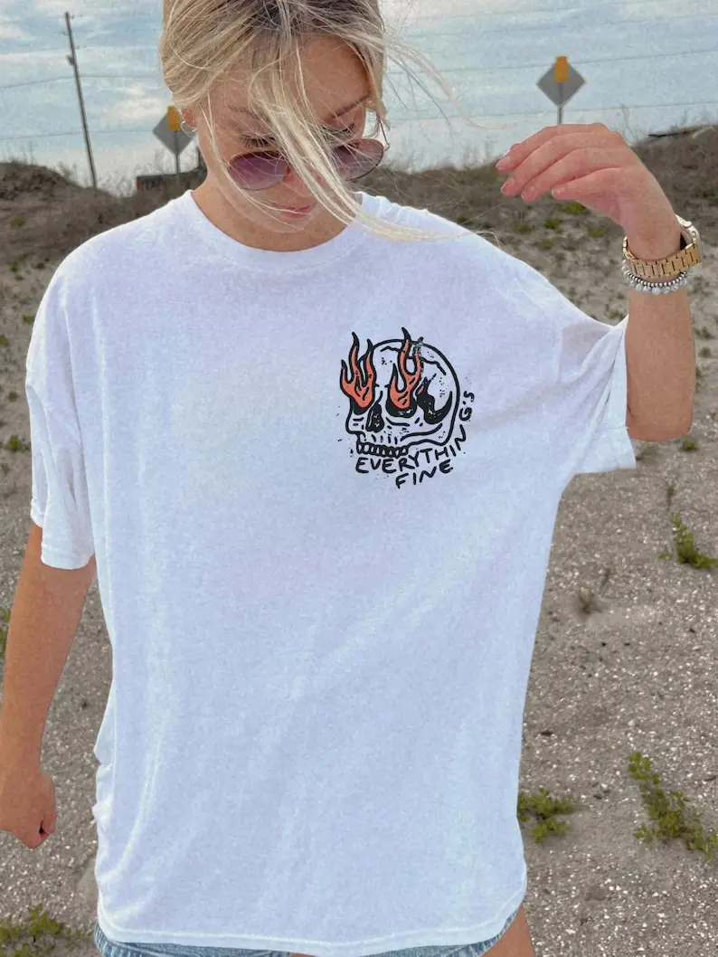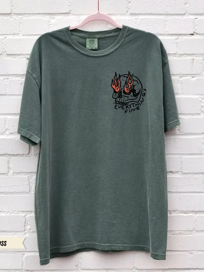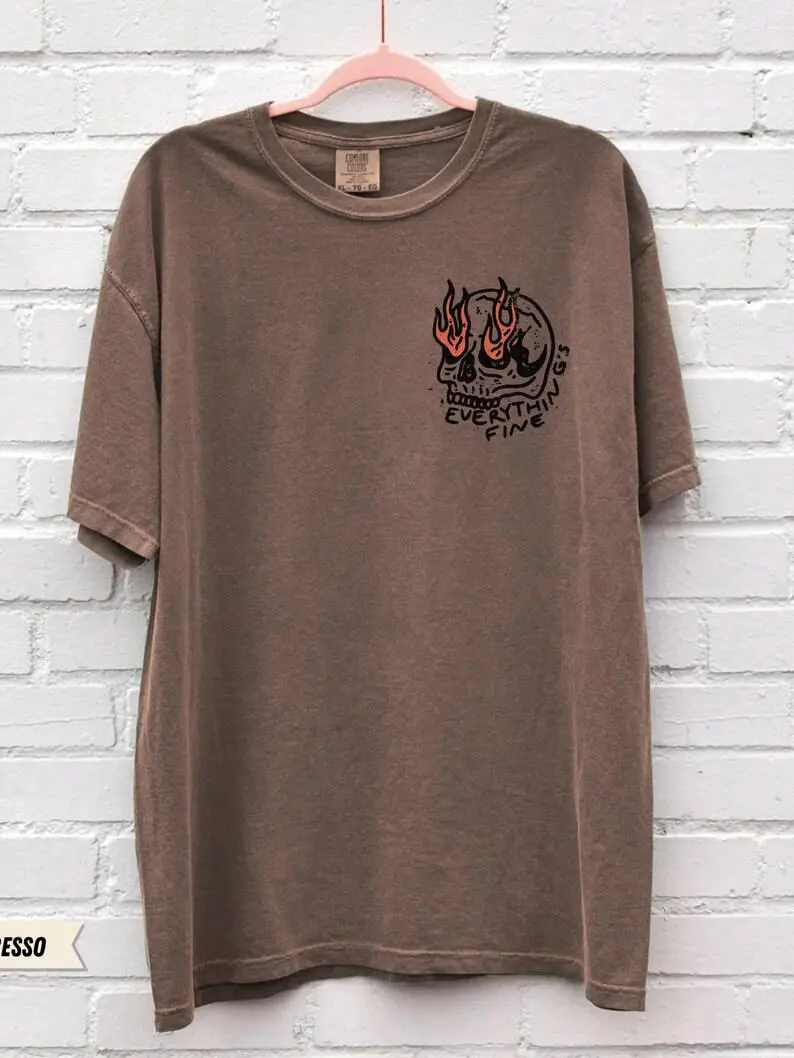 UNISEX Comfort Colors® Everything's Fine Tee, Rock n Roll Vintage Rebel Skull Shirt, Retro Moto Edgy Grunge Tops Festival Aesthetic Streetwear