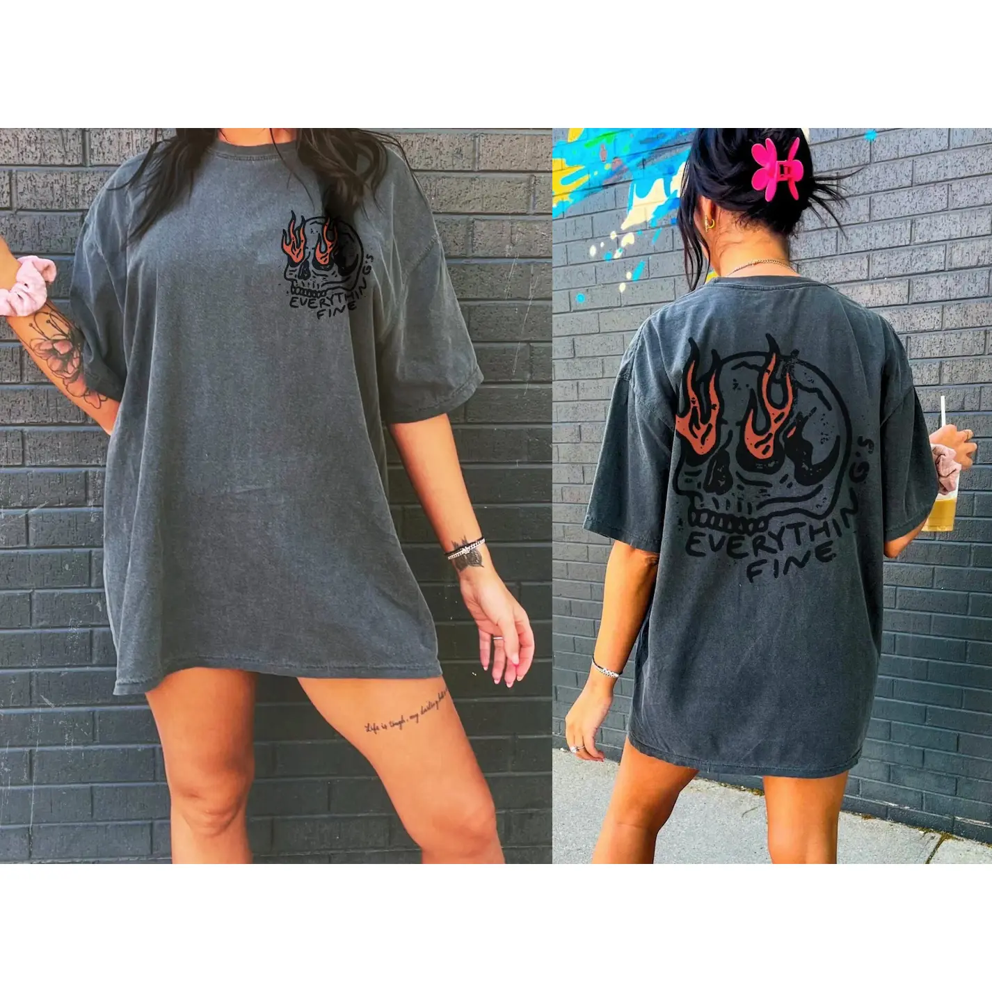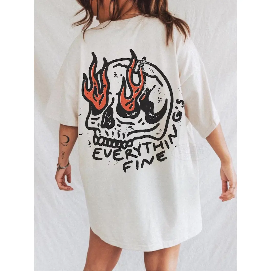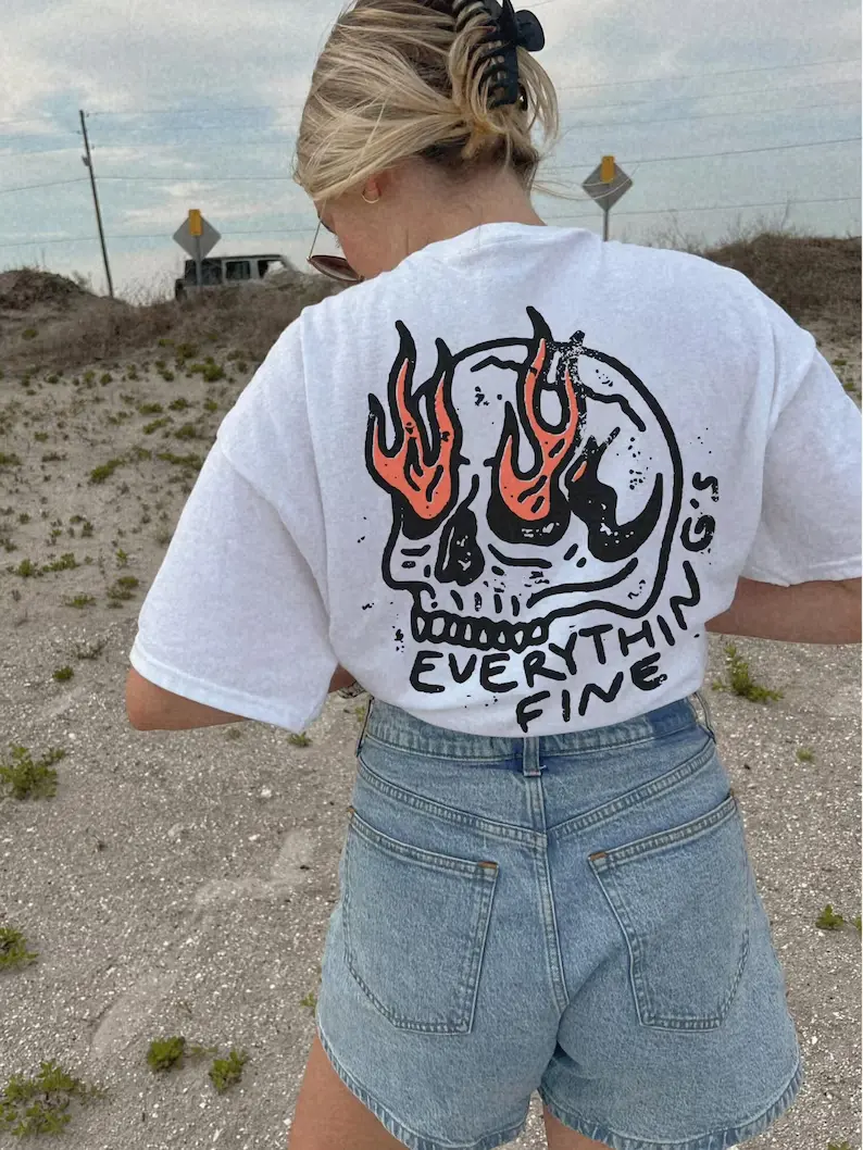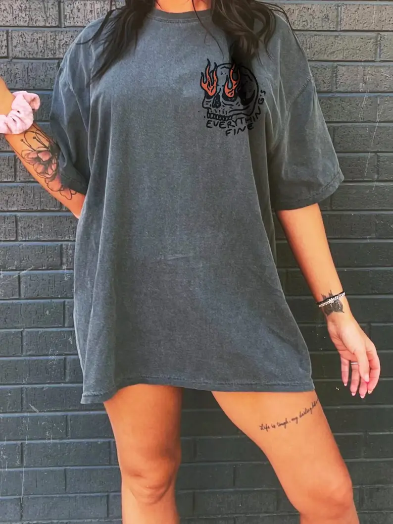 UNISEX Comfort Colors® Everything's Fine Tee, Rock n Roll Vintage Rebel Skull Shirt, Retro Moto Edgy Grunge Tops Festival Aesthetic Streetwear