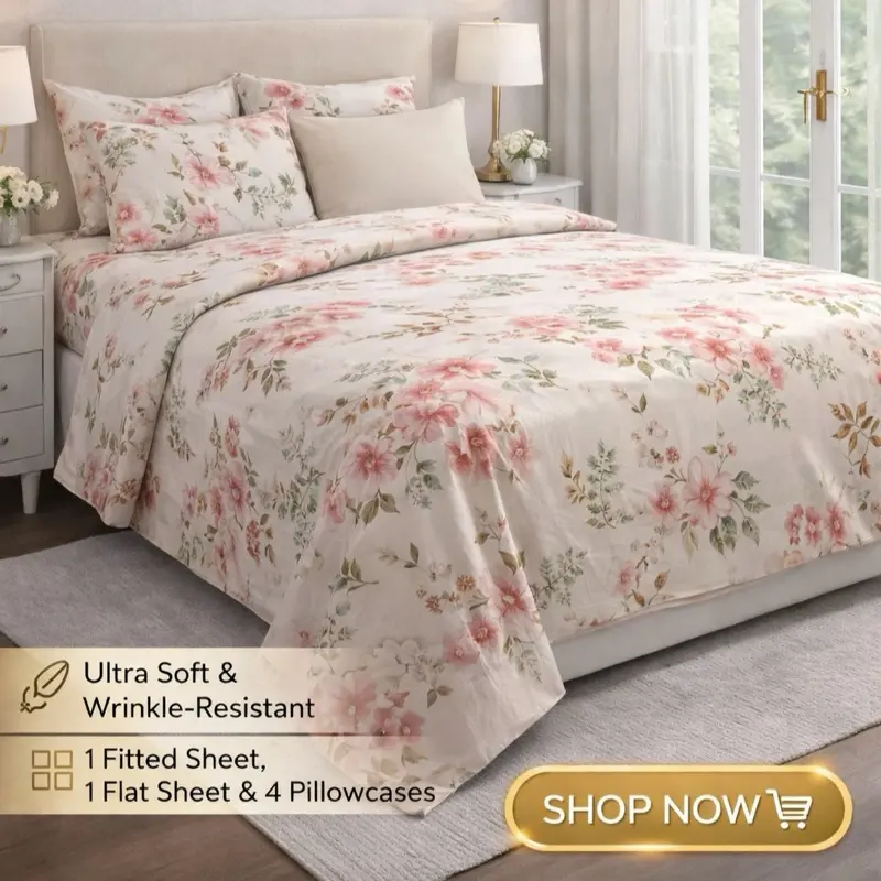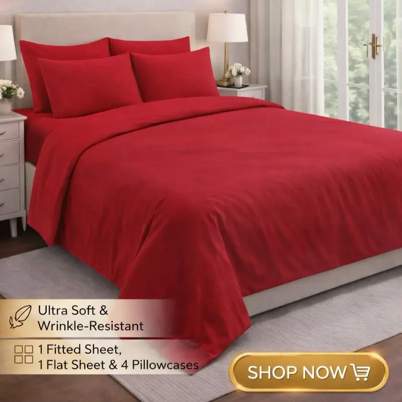 ✔️ Includes 6 pieces (1 flat sheet, 1 fitted sheet, 4 pillowcases)