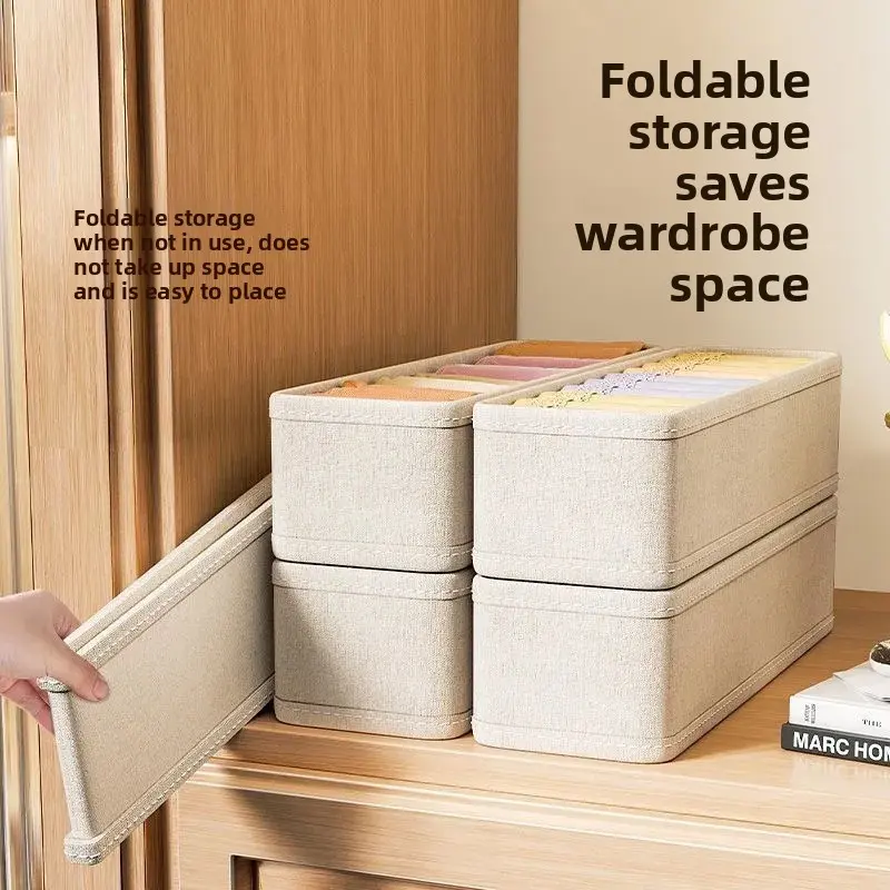 Cotton and linen washable socks underwear storage portable organizer, dormitory home wardrobe artifact multi-functional foldable storage box