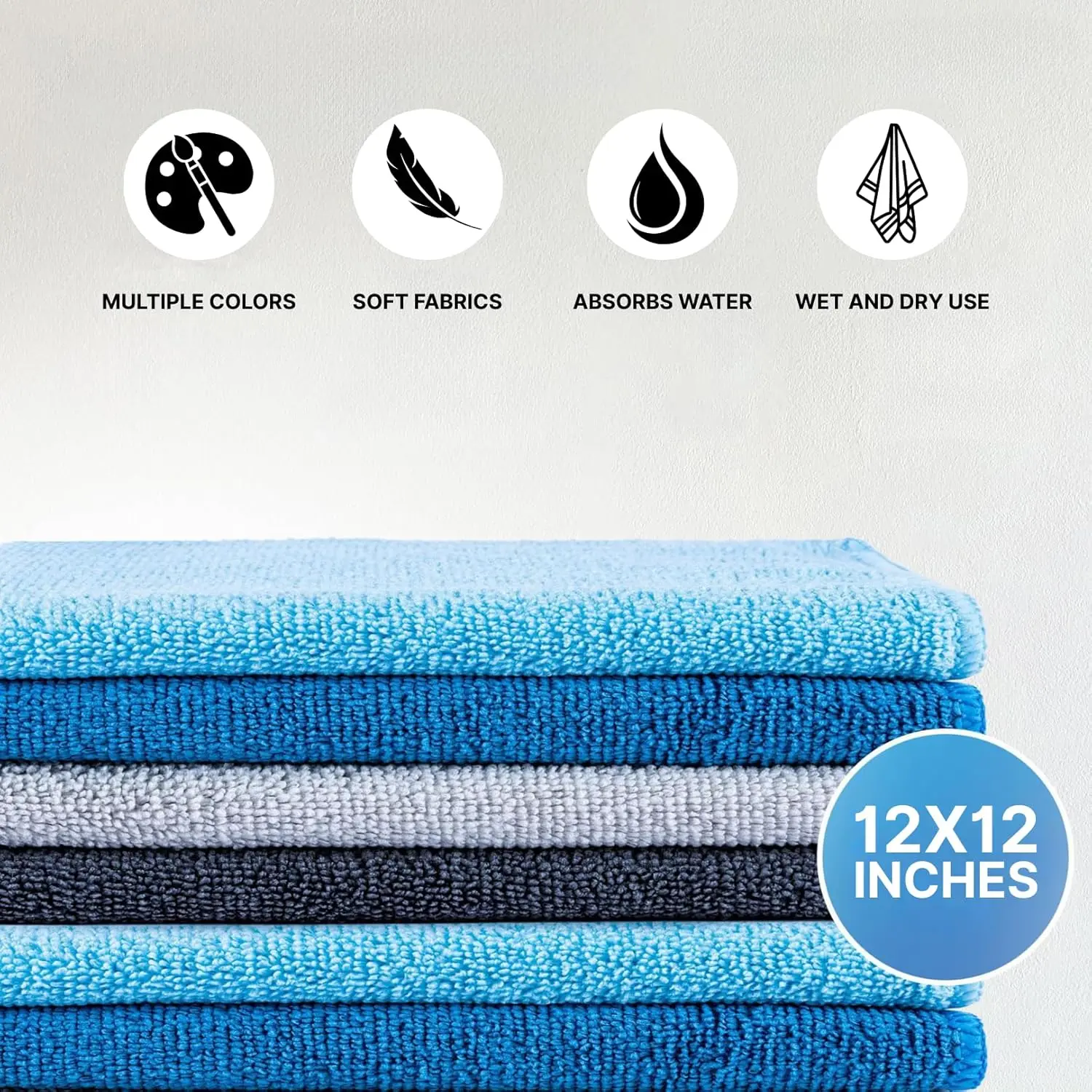 Keep your home, car, and workspace spotless with our 12-pack of premium microfiber cleaning cloths. Each towel measures a convenient 12 x 12 inches, making them the perfect size for a wide range of tasks. Whether you're tackling dust on your furniture, cleaning glass surfaces, wiping countertops, or detailing your vehicle, these micro fiber towels for cleaning deliver streak-free, lint-free results every time. Crafted from ultra-fine microfiber fibers, these cleaning towels are super soft, gentle, and non-abrasive. They protect delicate surfaces from scratches, making them ideal for cleaning cars, electronics, kitchen appliances, and even eyeglasses. Thanks to their superior absorbency, these microfiber towels can hold several times their weight in water, allowing for efficient spill clean-up and surface drying. These micro fiber cloths are incredibly versatile and can be used wet or dry. Use them as microfiber clothes for house cleaning, micro cloth for cleaning bathrooms, or microfiber towels for windows and mirrors. They are also great microfiber towels for car care, delivering professional-level results when washing or polishing. Built to last, our microfiber cleaning clothes are durable and machine washable, holding up to hundreds of uses. Their reusable nature helps reduce waste, making them an eco-conscious alternative to disposable paper towels. Whether you need microfiber towels for cleaning your home or micro fiber cloth for car detailing, this 12-pack has you covered with reliable, streak-free performance. Upgrade your cleaning routine with these soft, strong, and absorbent microfiber towels - a must-have for any household or garage.