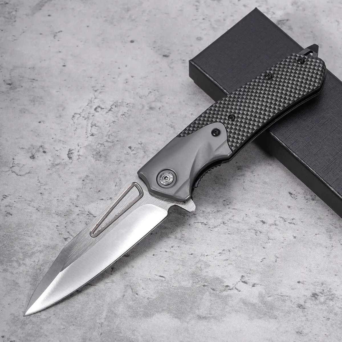 Sleek EDC Folding Knife with Carbon Fiber Texture, Reliable Outdoor Gear for Camping & Bushcraft