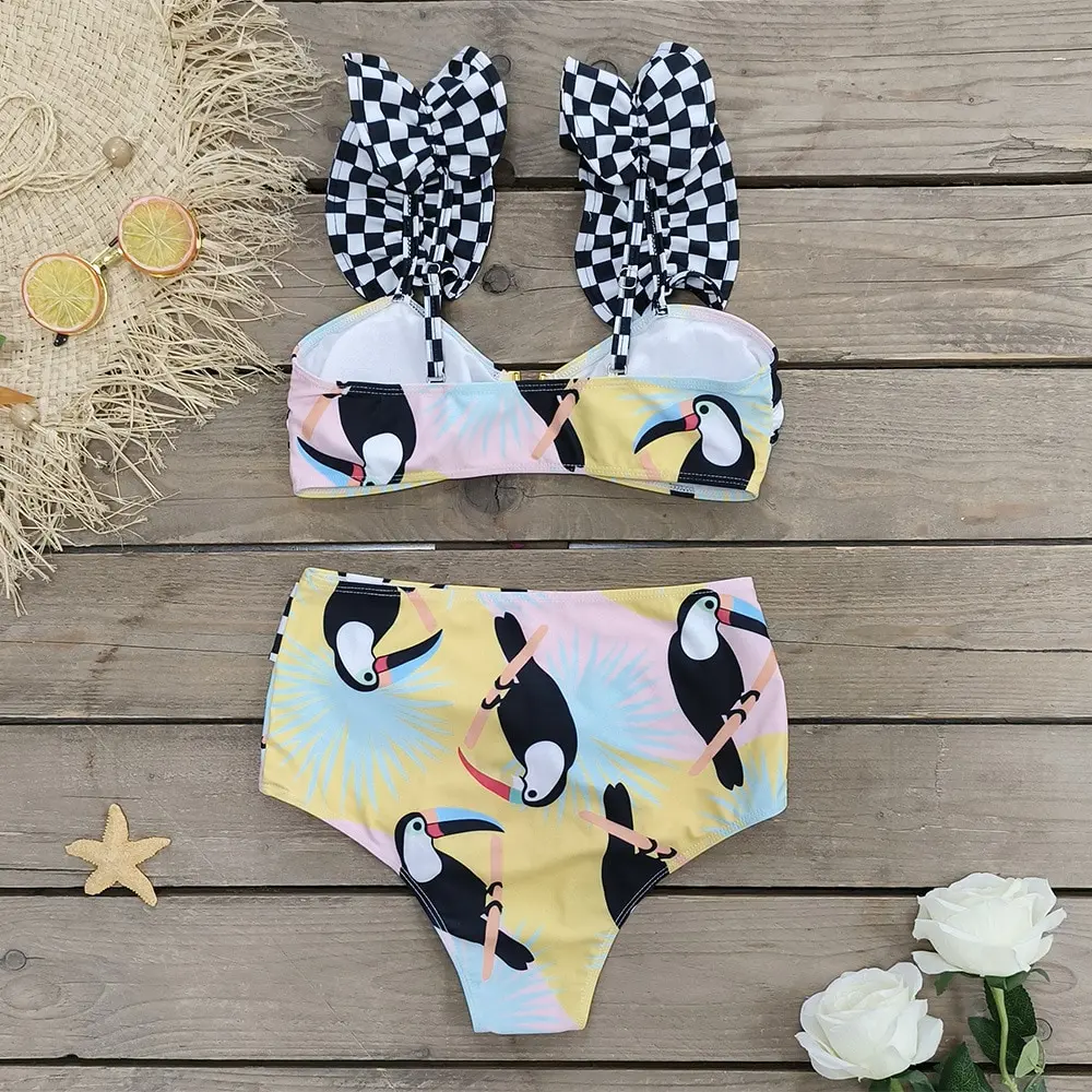 Print Separated Metal Swimwear Triangle Cup Bikini Swimsuit for Women