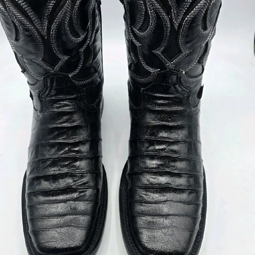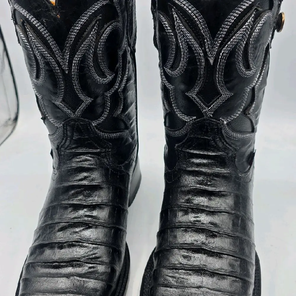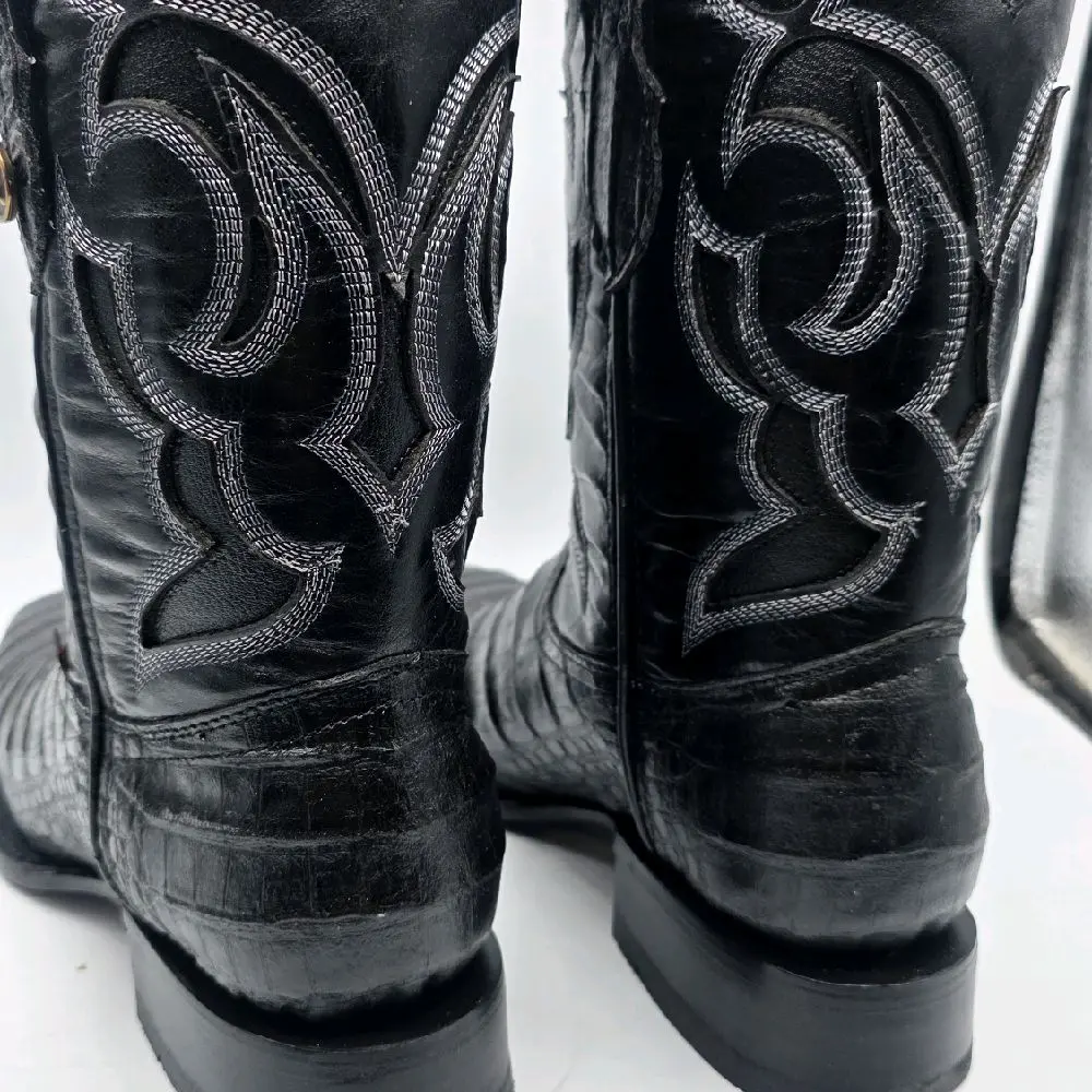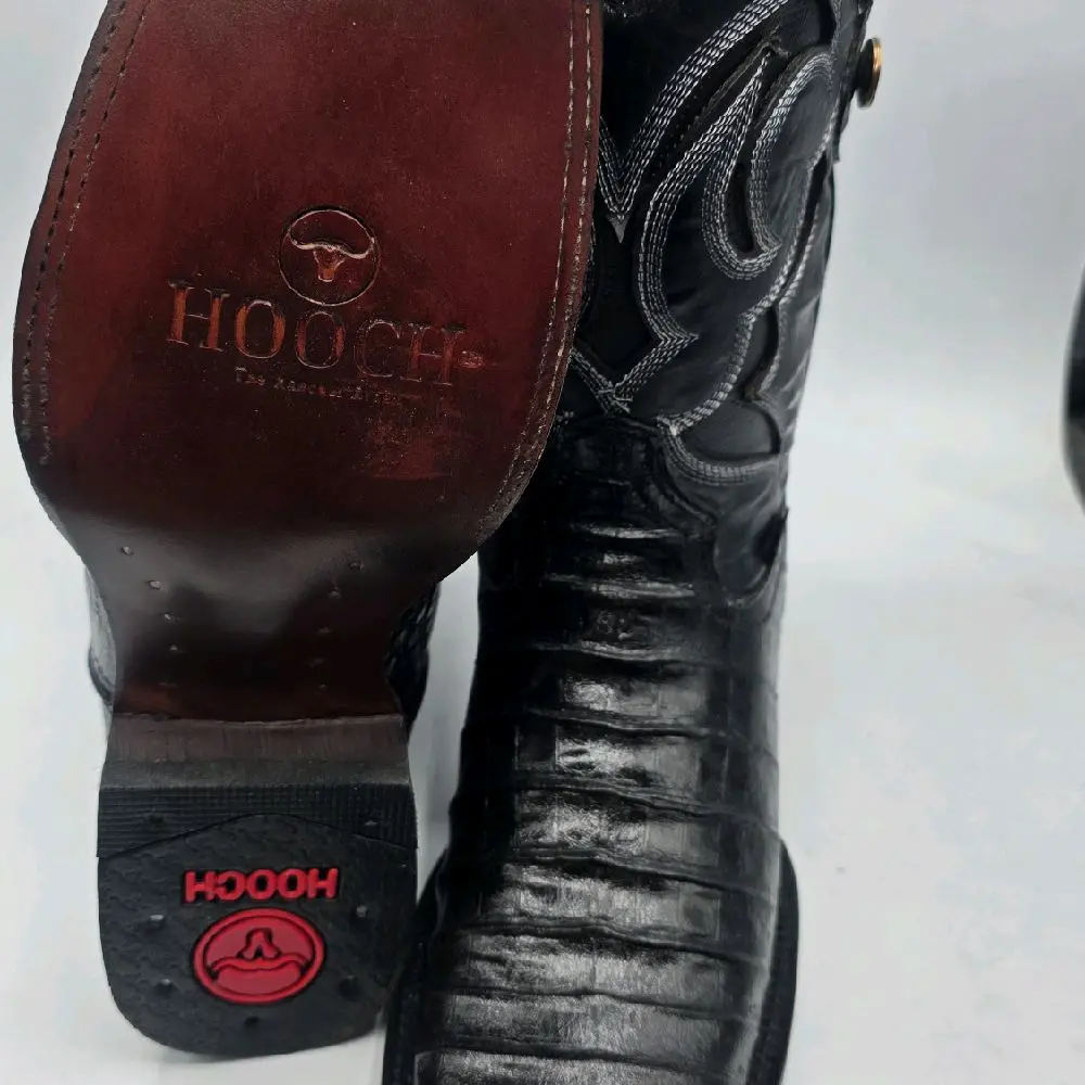 Hooch Men's Black Leather Cowboy Boots with Embroidered Design and Comfortable Fit