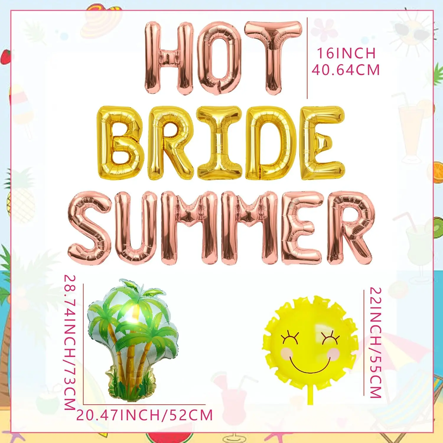 Hot Bride Summer balloons:Celebrate the bride to be with this fun and vibrant balloons! Perfect for tropical themed bachelorette parties, beach bridal showers, poolside celebrations, or any summer wedding event.