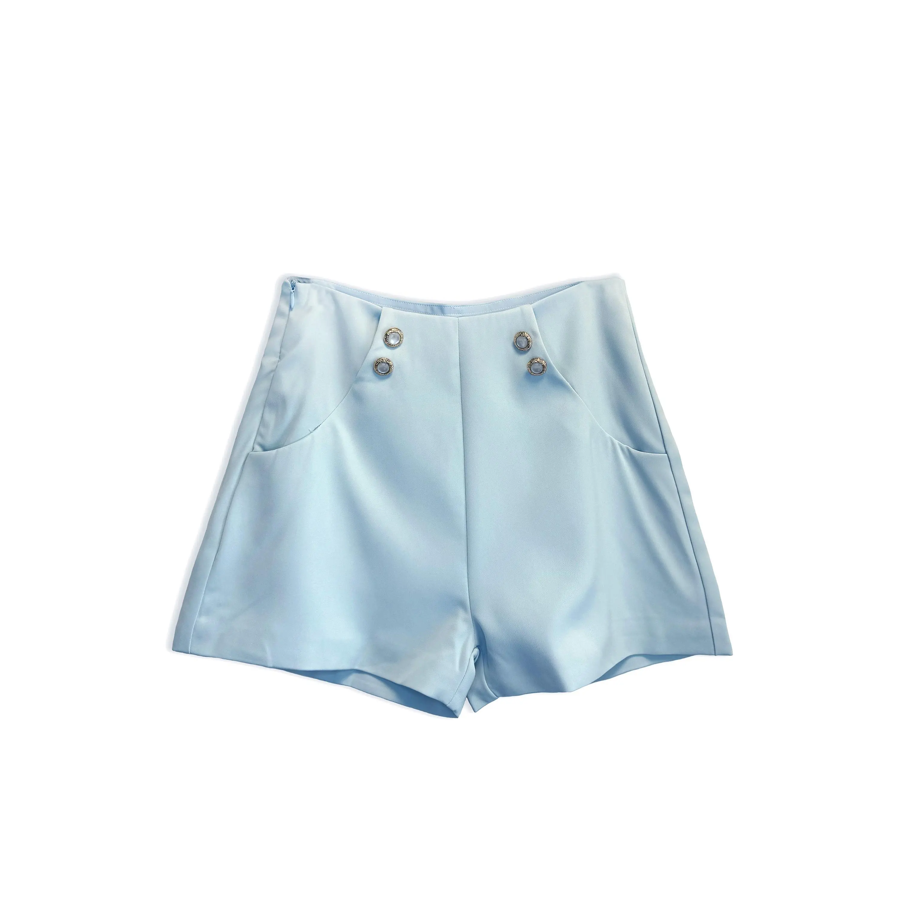 Two mother-of-pearl buttons accent the waist and hips.