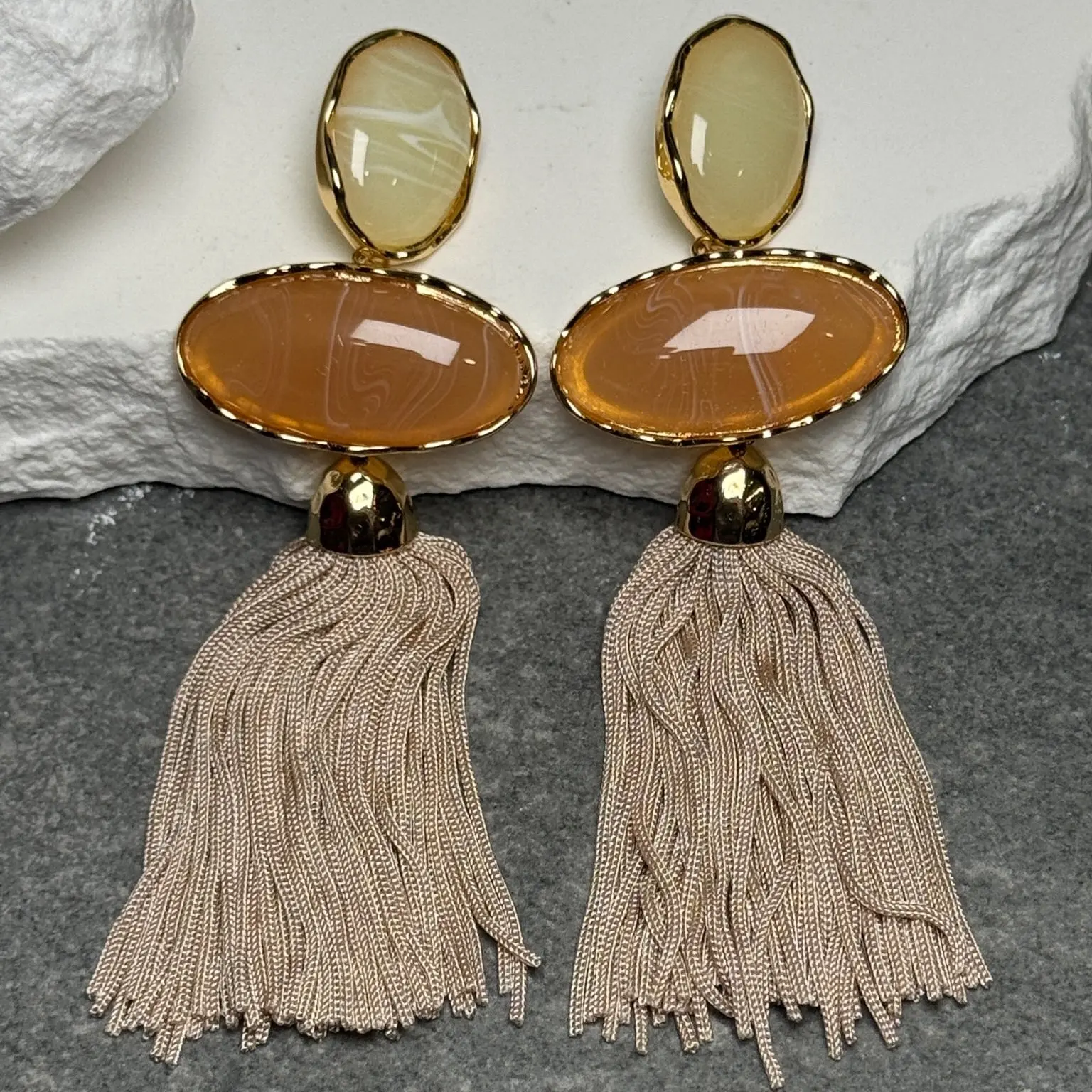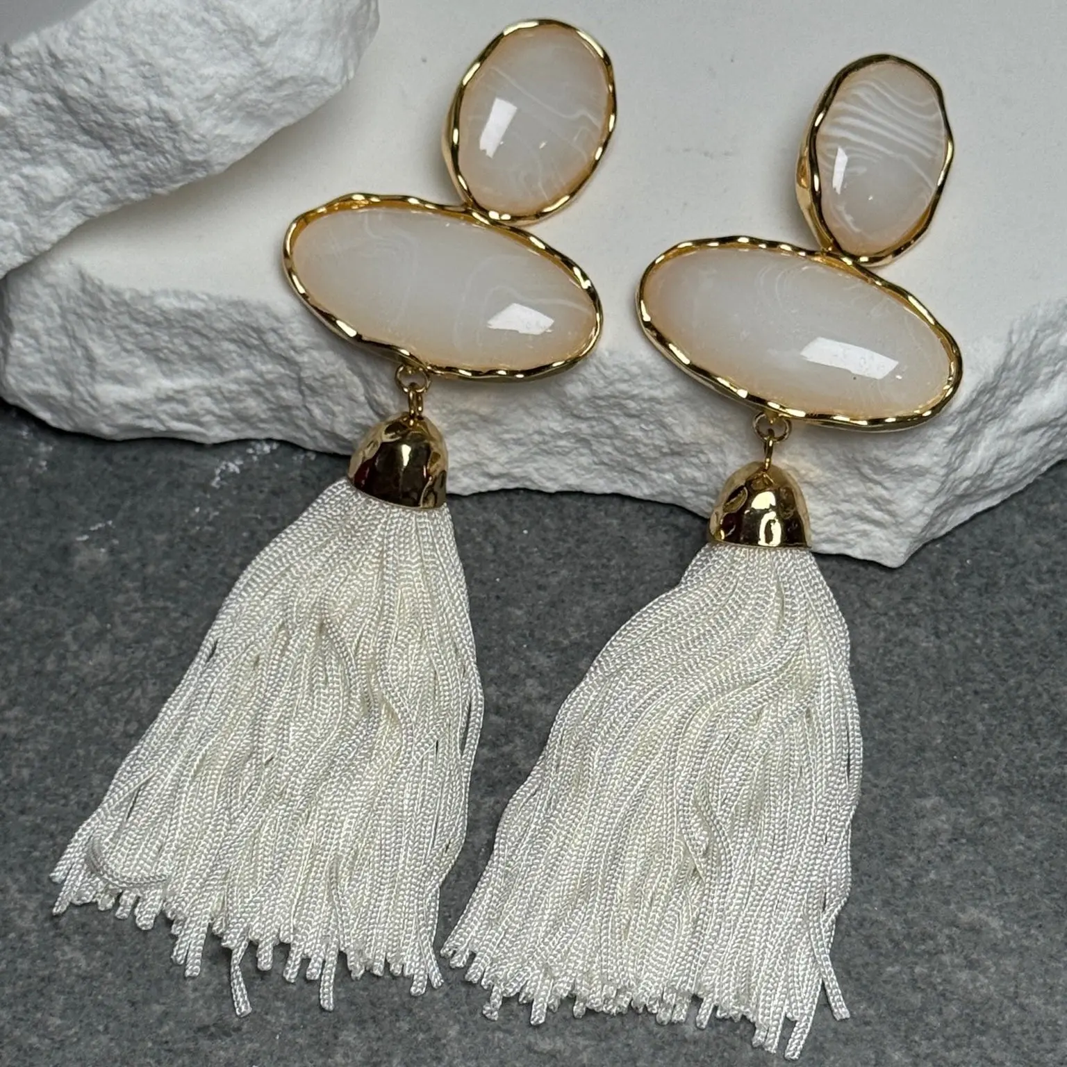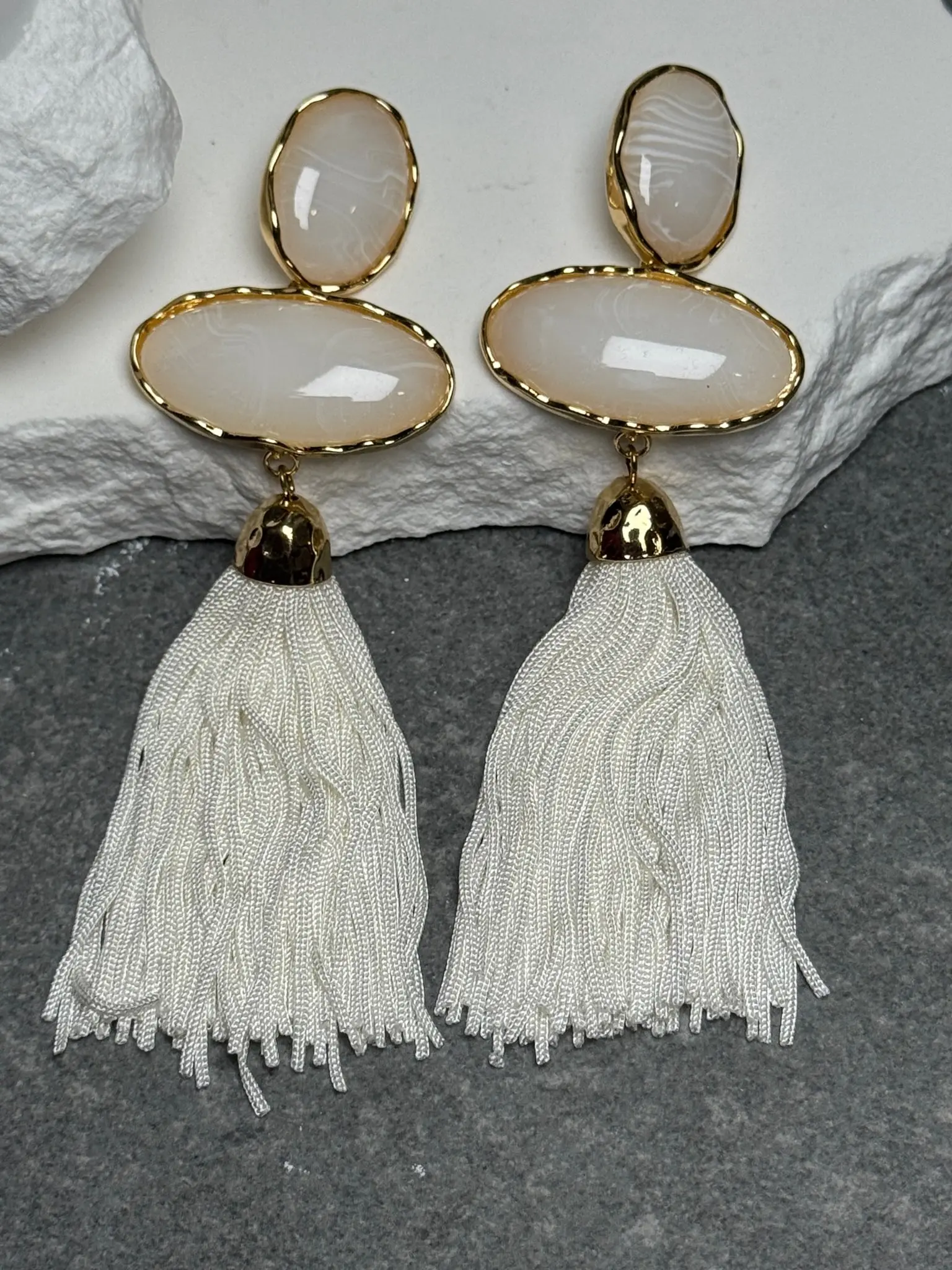 Meet your new statement obsession. The Coastal Drip Triple Tassel Earrings bring effortless seaside glam with a bold, layered twist. Designed with a striking three-tier drop and fluid tassel finish, these earrings capture the essence of sun-soaked days and golden hour glow.