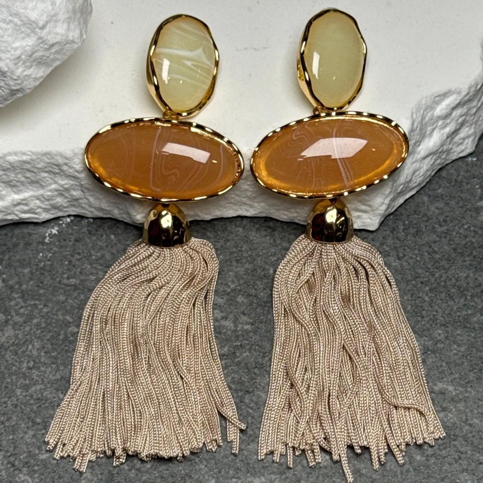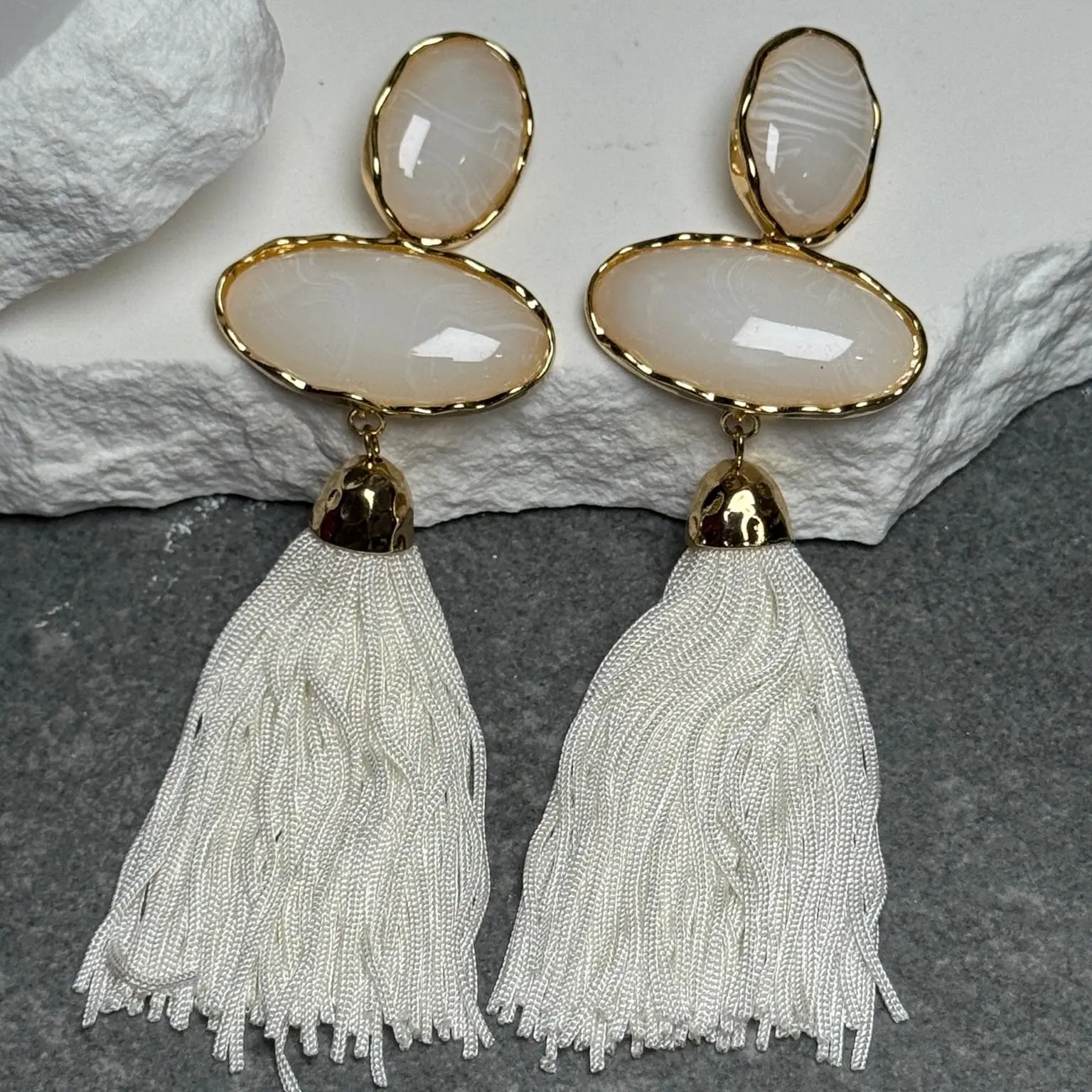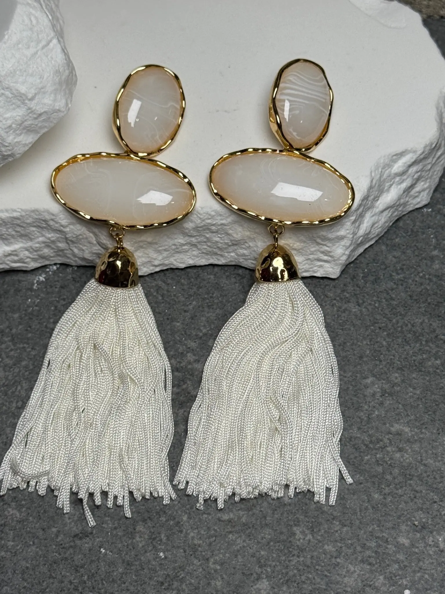 Meet your new statement obsession. The Coastal Drip Triple Tassel Earrings bring effortless seaside glam with a bold, layered twist. Designed with a striking three-tier drop and fluid tassel finish, these earrings capture the essence of sun-soaked days and golden hour glow.