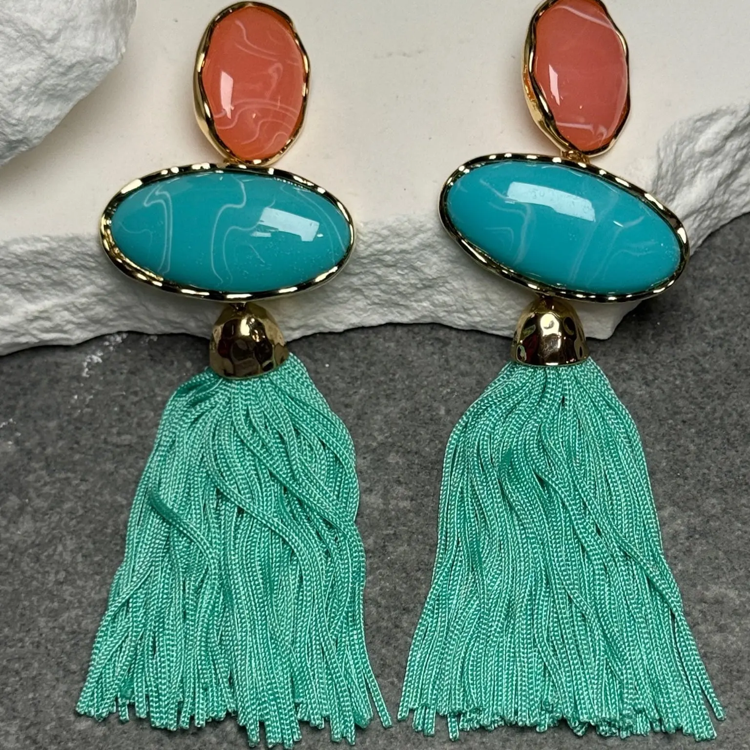 Lightweight yet eye-catching, each layer flows with movement, giving you that perfect mix of playful Y2K energy and elevated coastal elegance. The soft aqua and coral tones add a fresh, beachy pop—making them the ultimate accessory for summer nights, vacations, or turning everyday looks into a vibe.