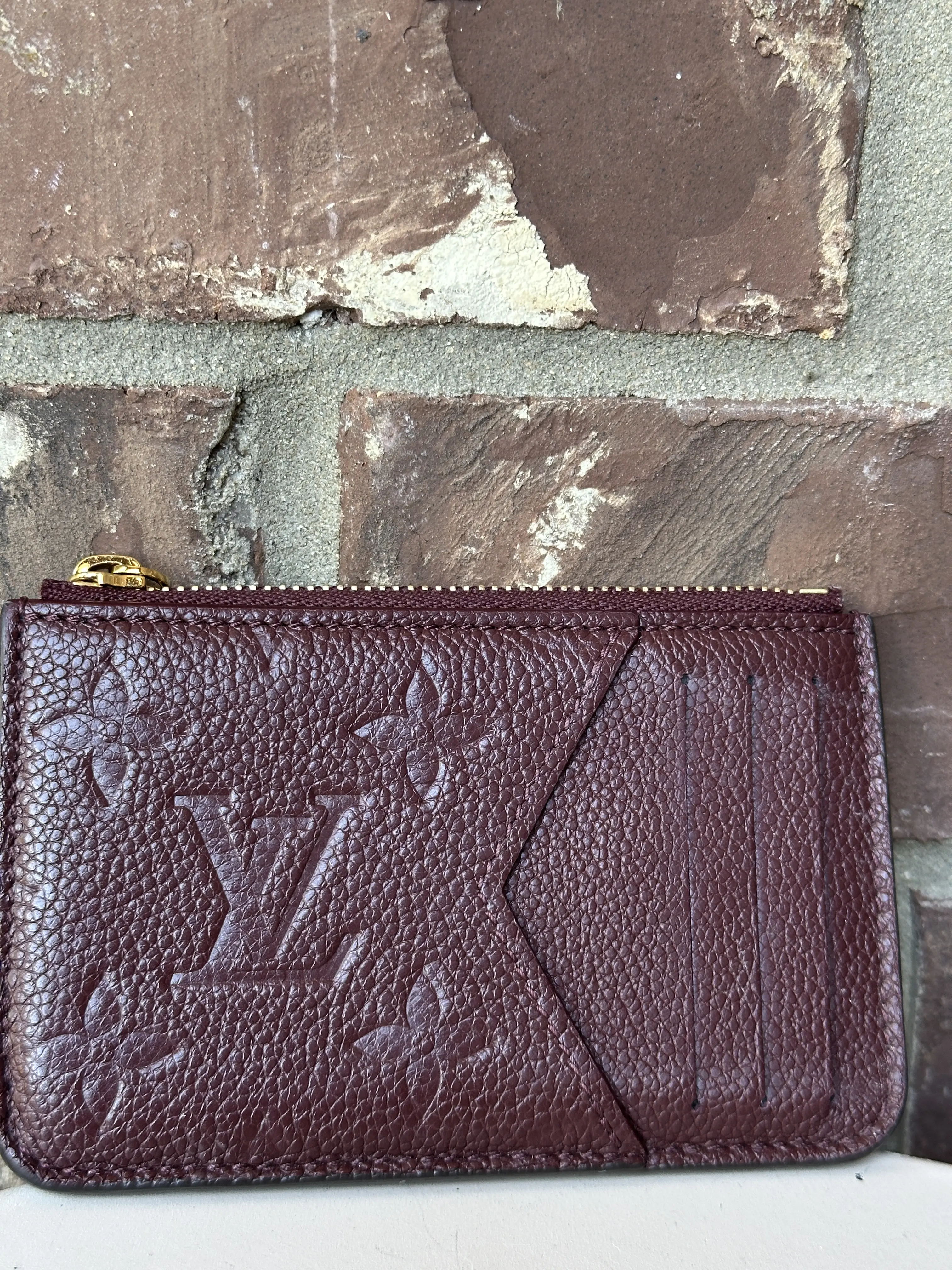 Pre-owned Louis Vuitton Leather Small Leather Goods Romy Card Holder Monogram Empreinte Wine 29108
