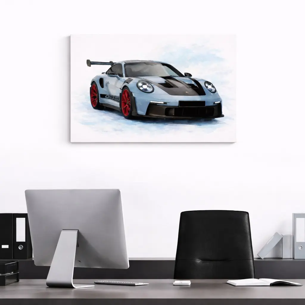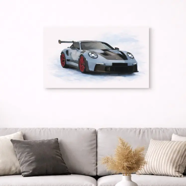 Turn any space into a statement with this bold Porsche 992 GT3RS canvas wall art, featuring a striking red sports car in a modern watercolor design. The perfect mix of luxury and art, made for car lovers who want something clean, unique, and eye catching.