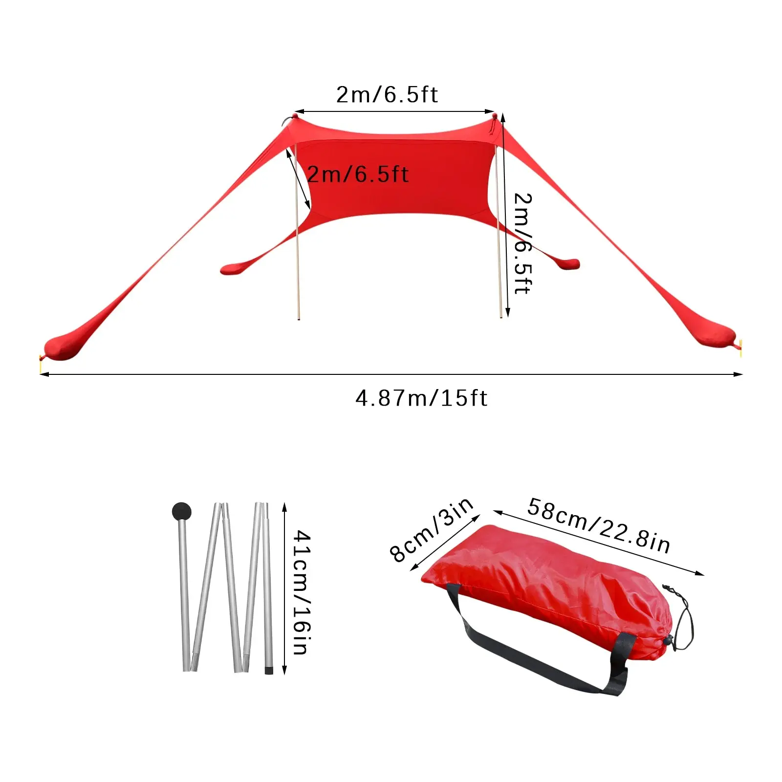 2m*2m Beach Tent, Beach Stretch Tent, Outdoor Tent for Beach Camping,Beach Elastic Sunshade - Red