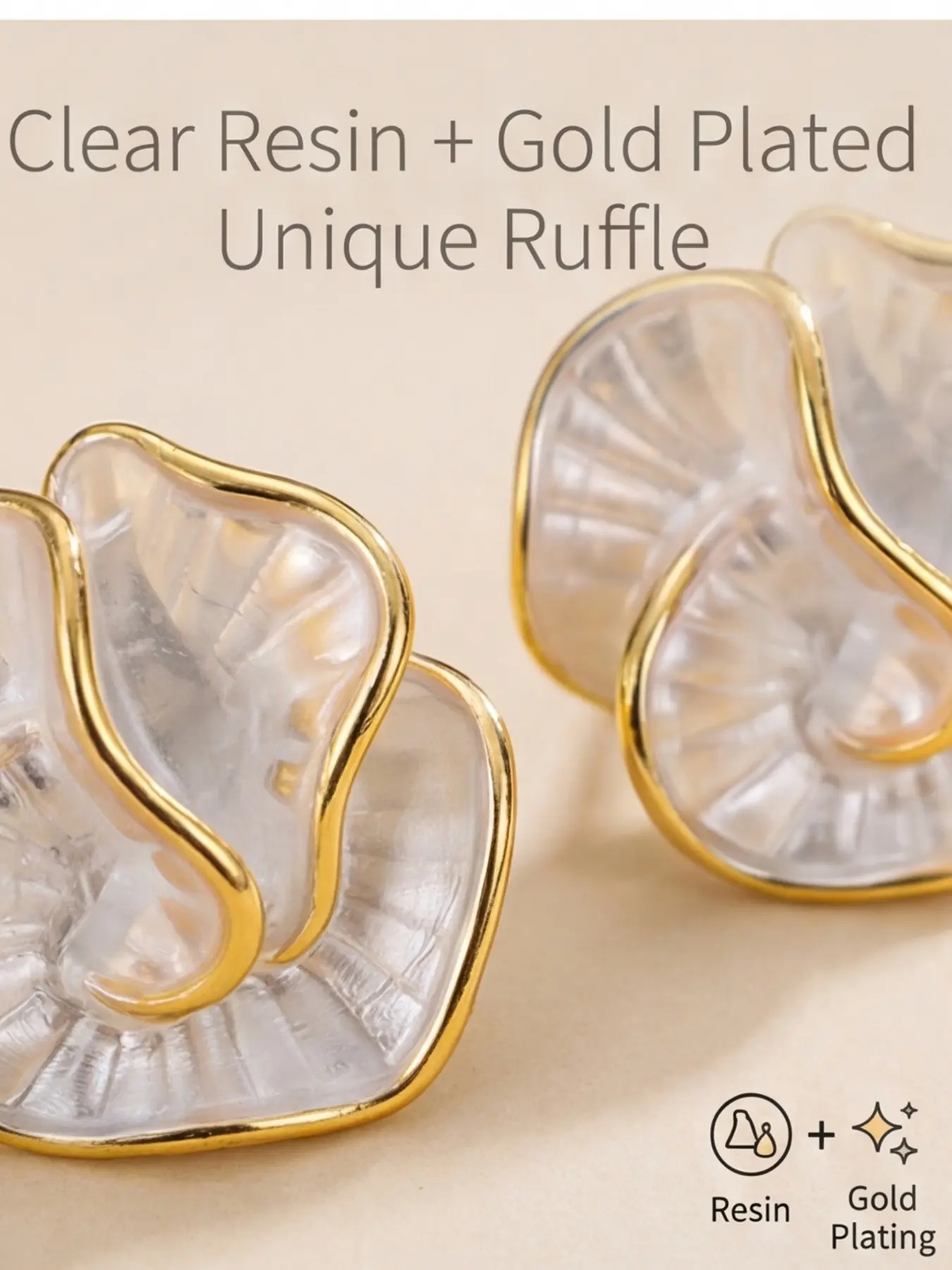 Women's Hypoallergenic Unique Ruffled Calla Lily Flower Stud Earrings, Gold Plated Clear Resin Petal Dainty Earrings, French Romantic Fashion Jewelry for Spring Summer Wedding Everyday Wear & Gift
