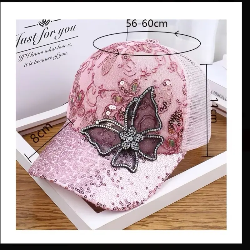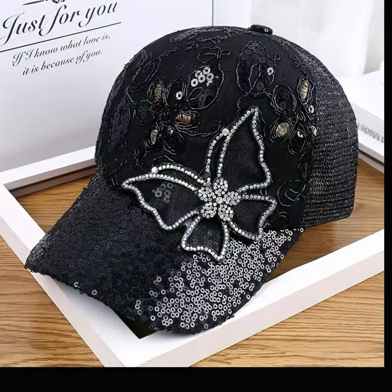 Women's Baseball Hat Mesh With Air Permeable Shade Hat, Butterfly Embroidery Sequin Trend Hat, Women's Dot Diamond Cap, Street Casual Fashion Hat