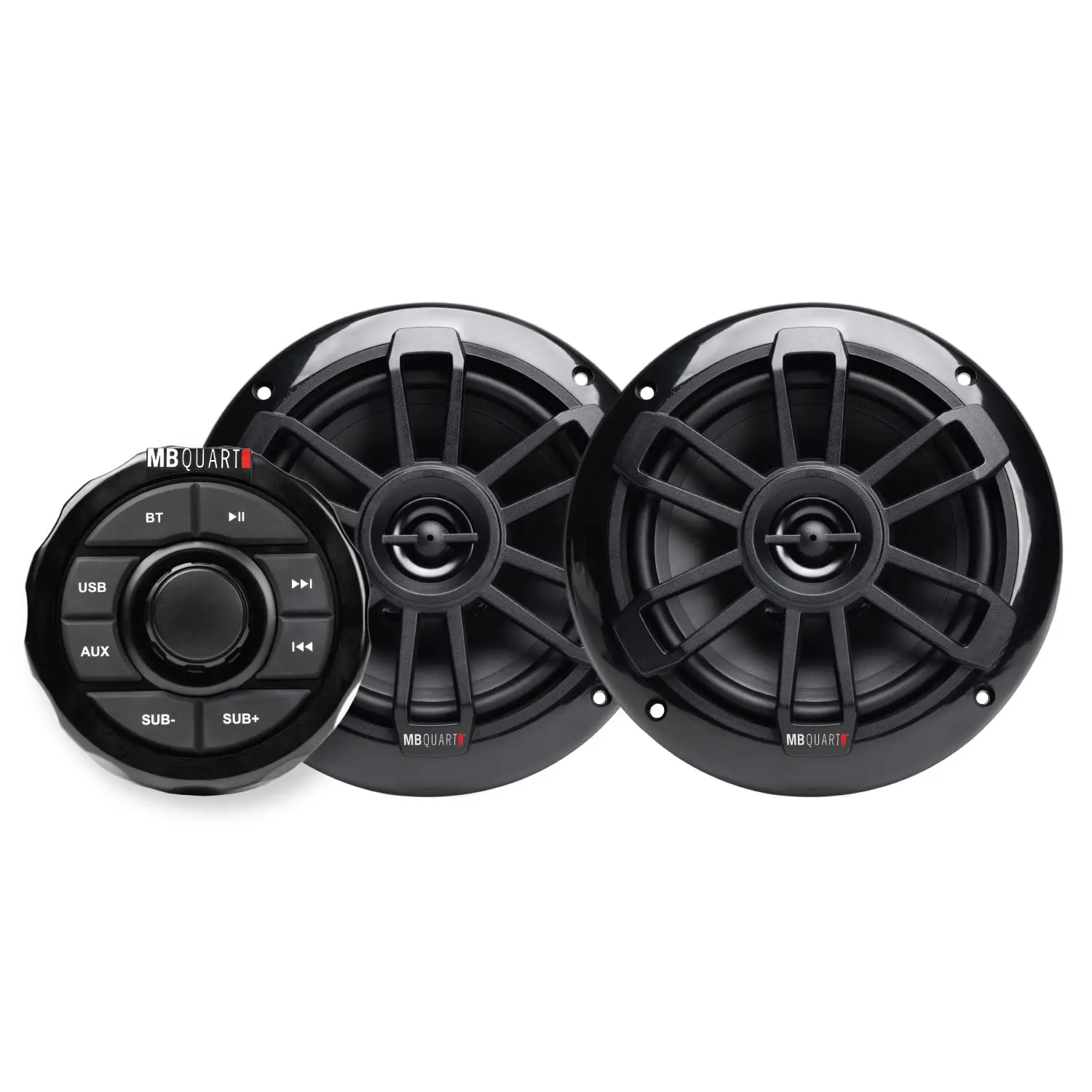 MB Quart Coaxial Speakers with Bluetooth Source Unit (Black) – 6.5 Inch, 160 Watt Each, Marine Grade Waterproof, for Marine, Car, RV, Set of 2 Speakers