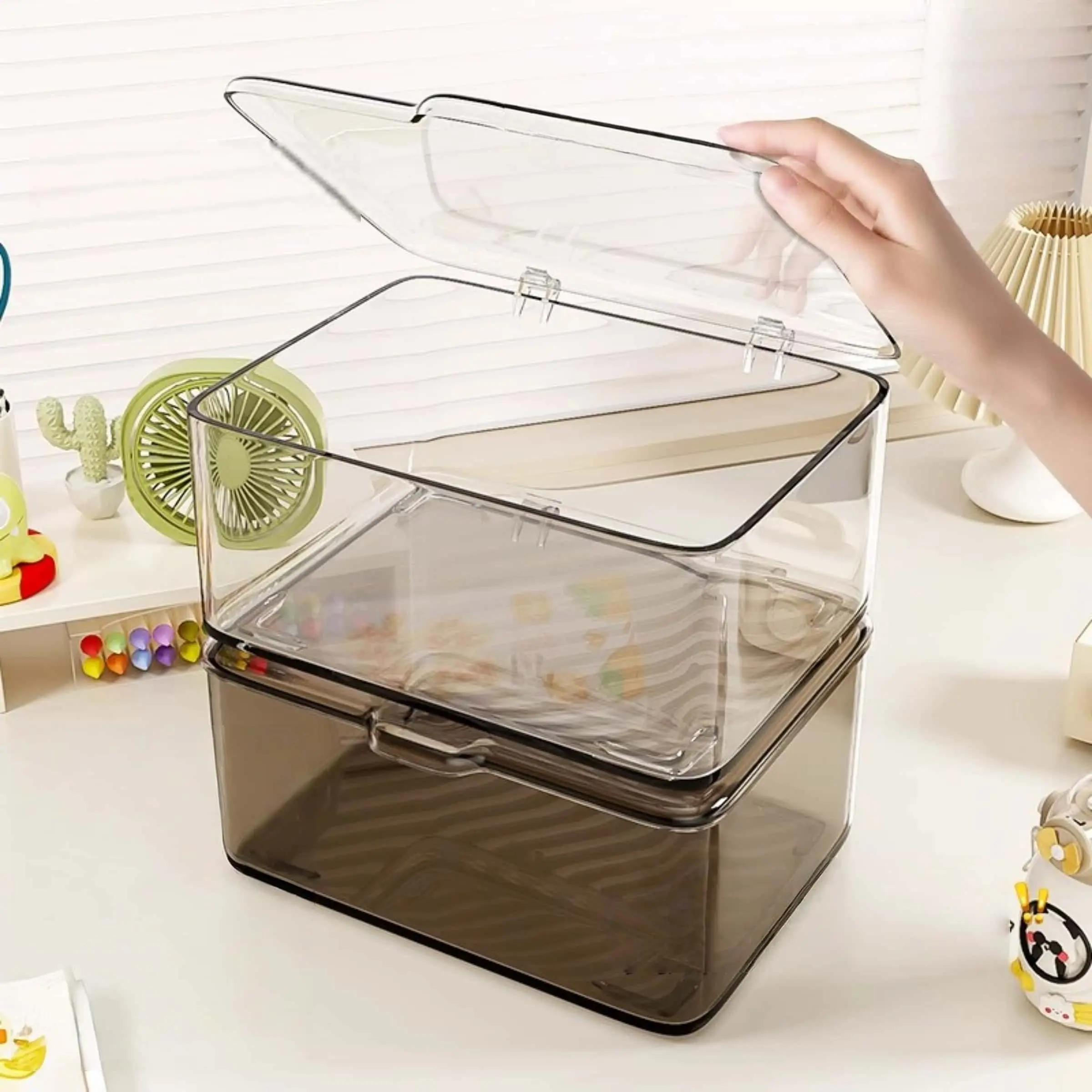 Two-Pack Transparent Plastic Storage Boxes with Lids, Stackable Food Storage Containers, Large Capacity for Kitchen, Fridge, Medicine Cabinet