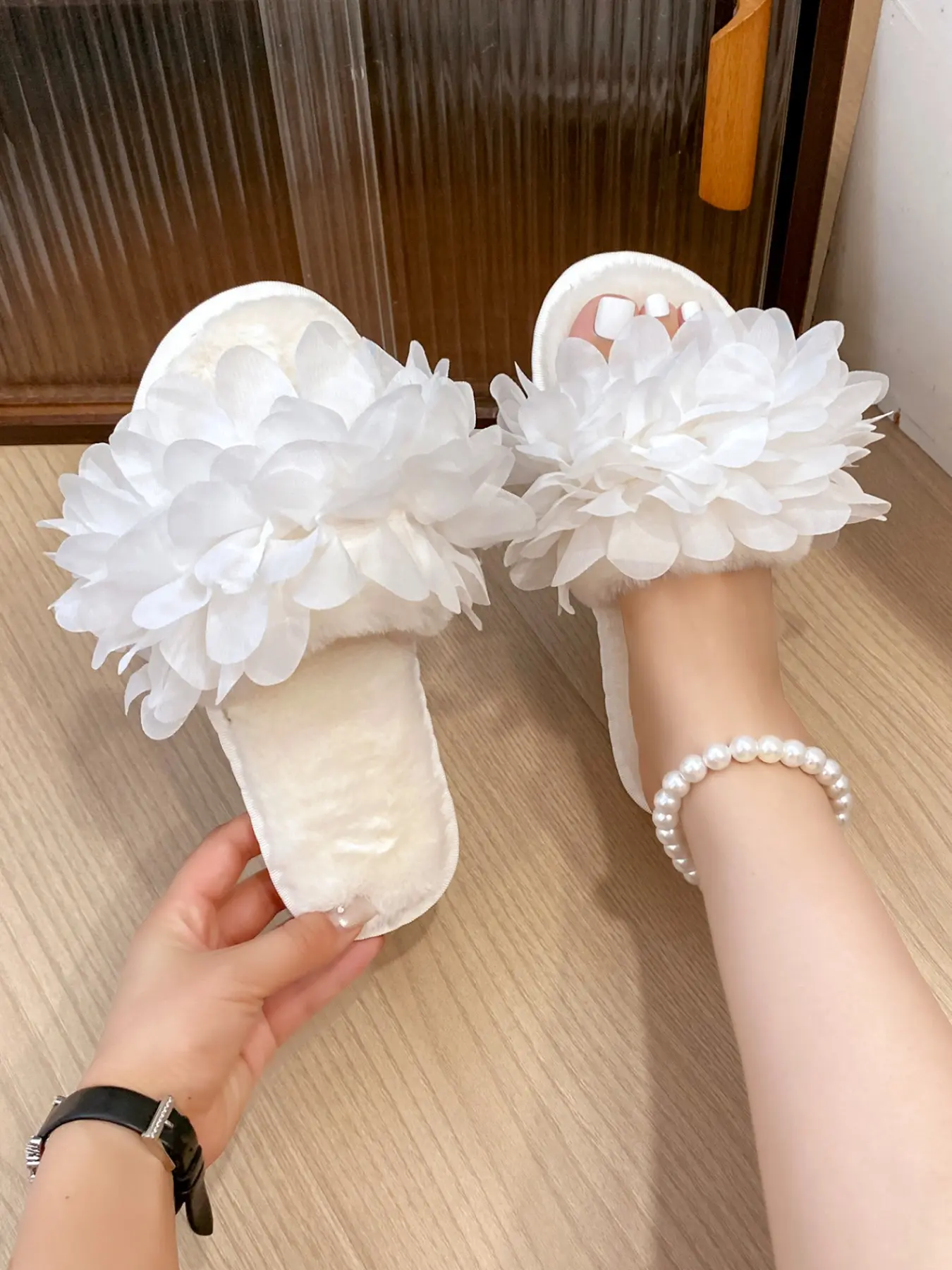 Pure Color Plush Slippers, Comfortable Soft Shoes for Women and Girls, Fashion Trendy Design, Open-Toe Wedding Shoes