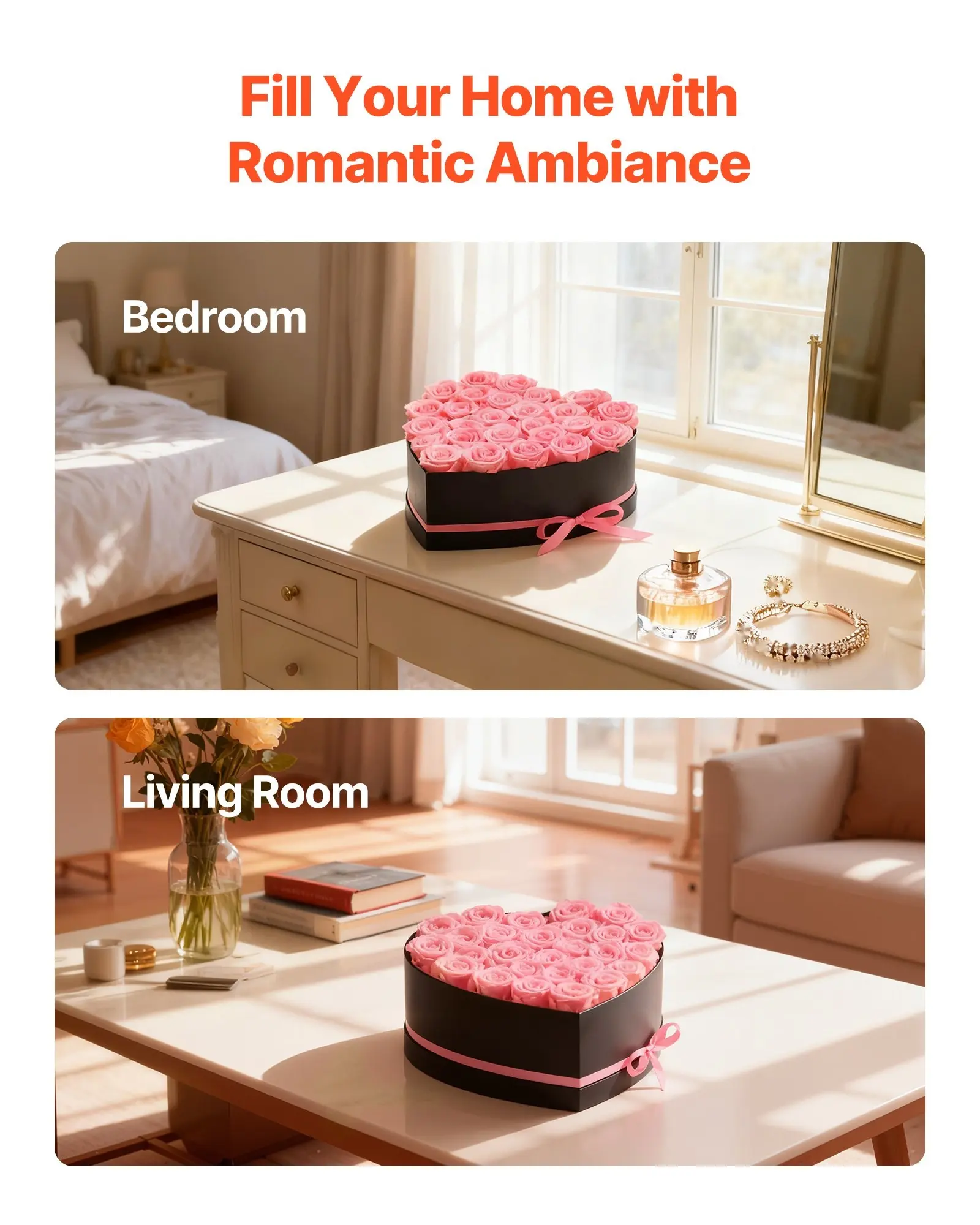 ·Forever Flowers Roses: Crafted from 27 real preserved roses, each forever rose is carefully arranged in a heart-shaped box for a vibrant, elegant, and romantic display