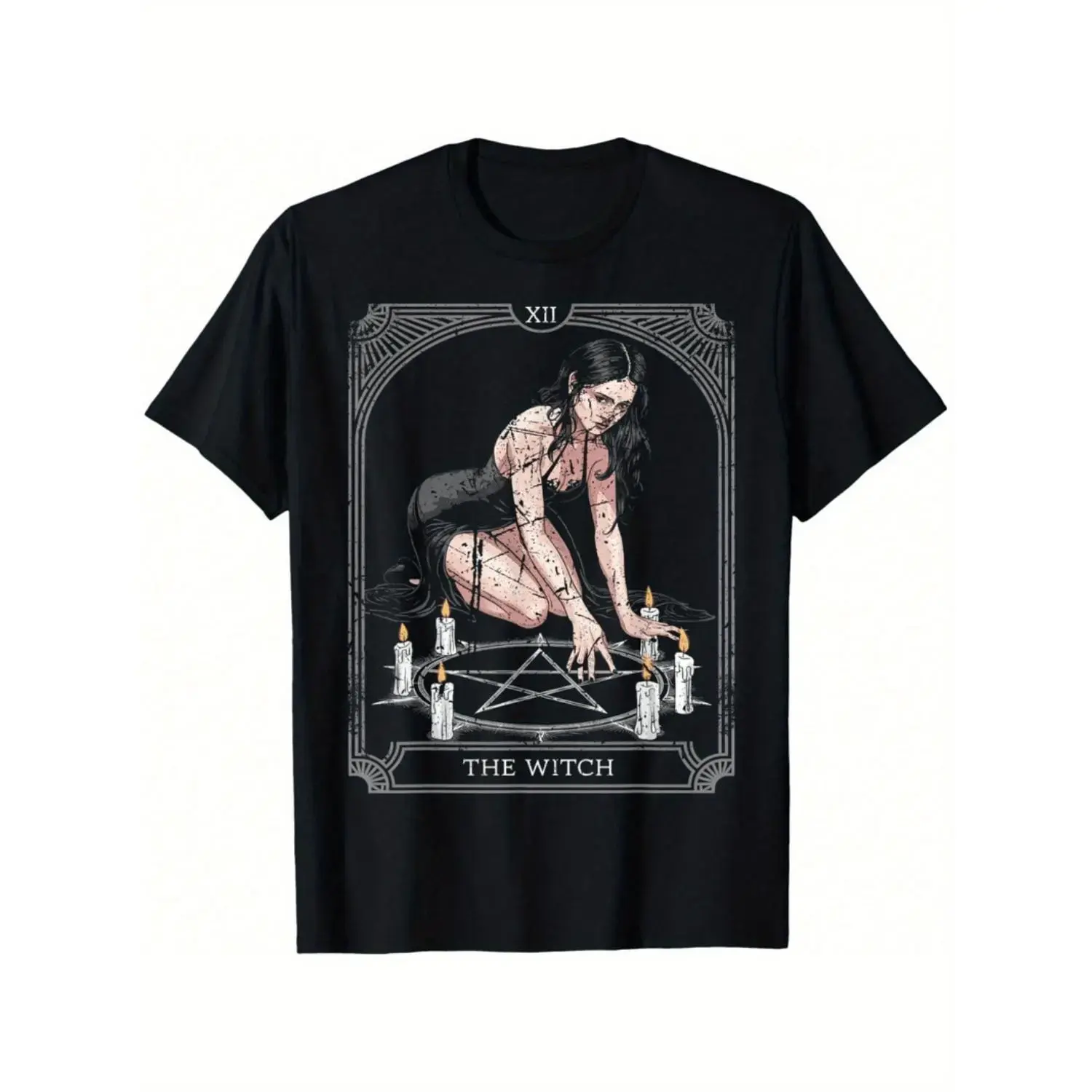 5. Oversized Gothic Tarot Card TShirt With Vintage Witch Design Casual Round Neck Top For Women AllSeason Wear