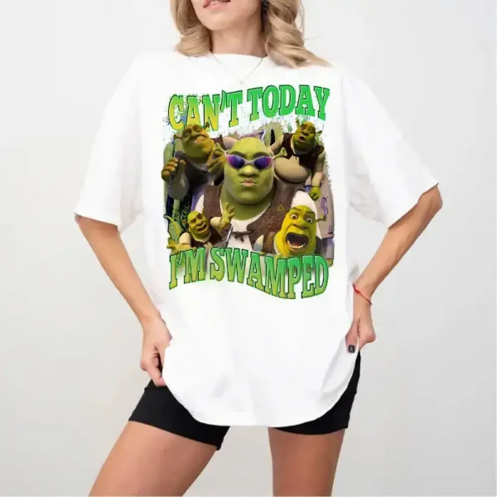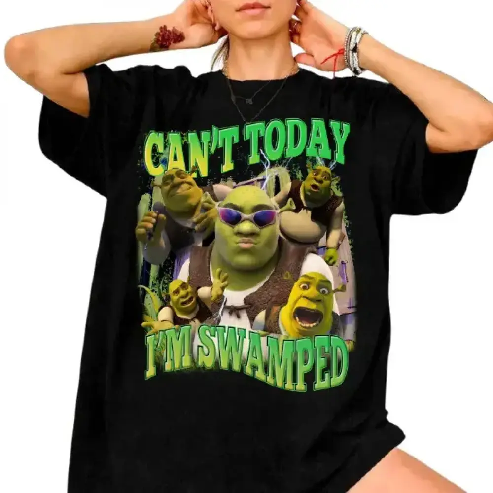 🎣 [100% Cotton] Unisex "Can't Today, I'm Swamped" Shrek Meme Shirt – Shrek Lovers Unite!🐸