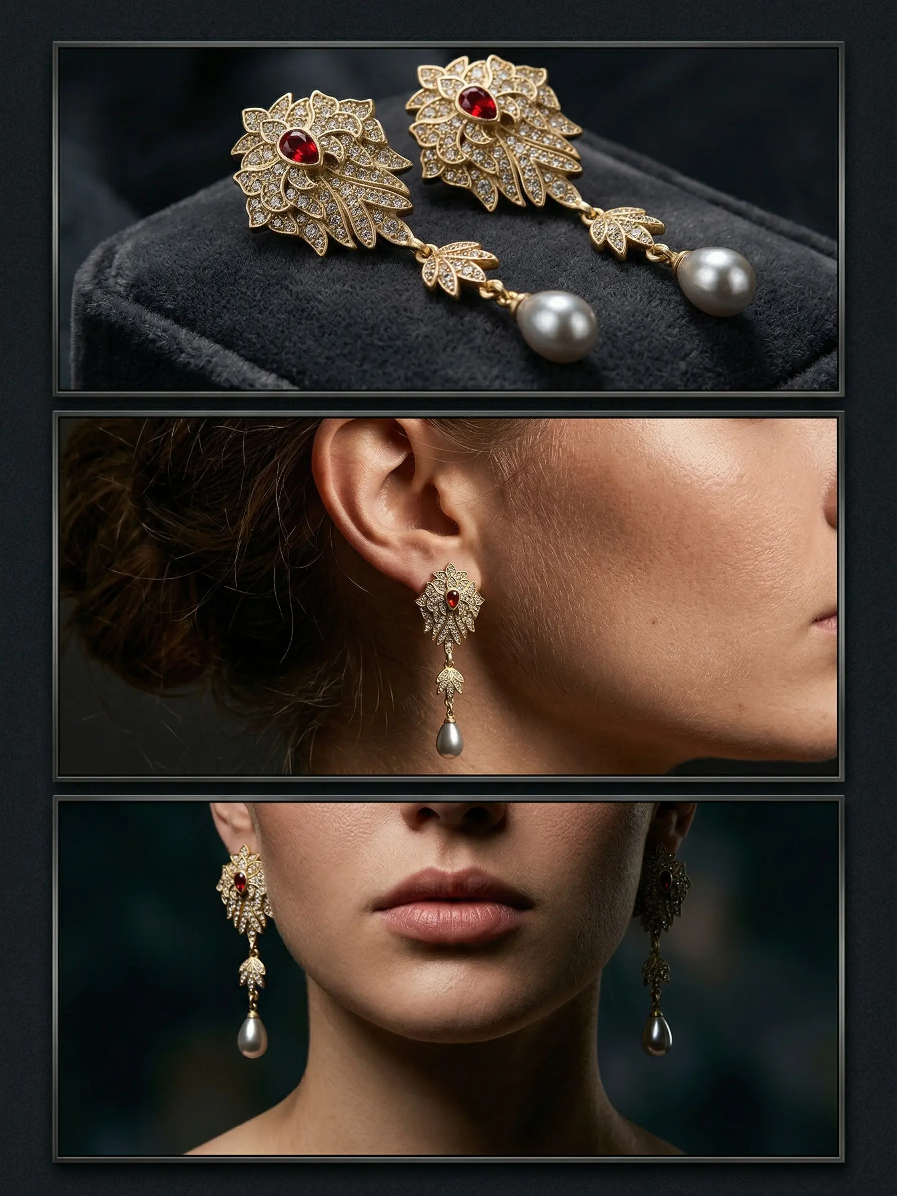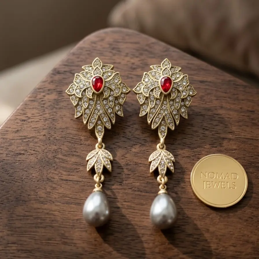 Product full name:Vintage copper alloy rhinestone red rhinestone flower glass pearl pendant earrings