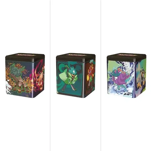 Details: Stack ’Em High! Choose a tin with powerful Pokémon from Paldea or Kitakami: the fearsome Treasures of Ruin, mysterious Paradox Pokémon, or feisty Ogerpon and its masks! This handy Pokémon TCG: Stacking Tin stacks neatly with others and contains: