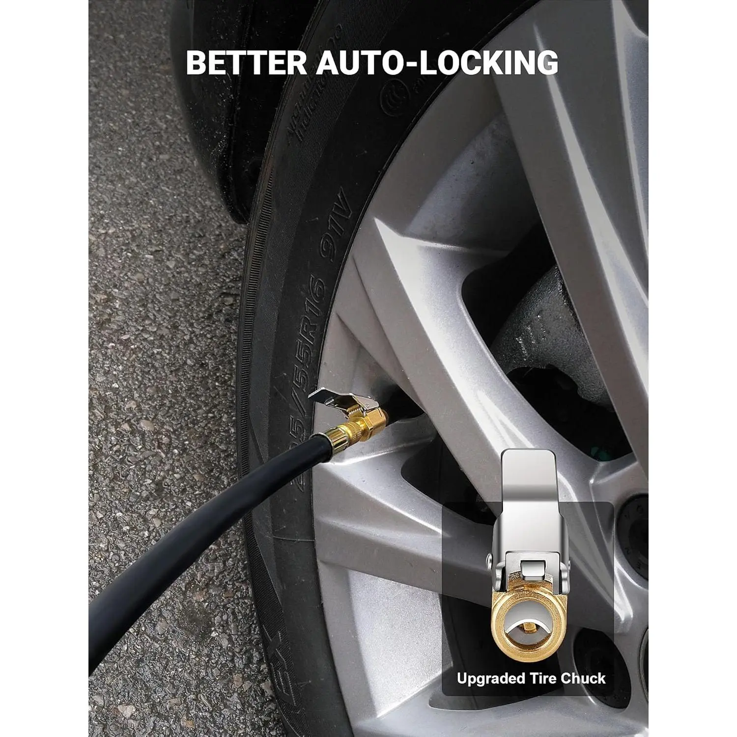 ·【Widely Applicable】Maximum endurance pressure is up to 250 PSI, ideal for conveniently inflating tires with schrader valve, widely applicable for various vehicles, bikes, motorcycle, car, etc. If you are looking for a durable air chuck set, this one is for you.