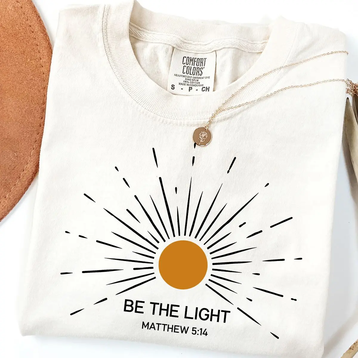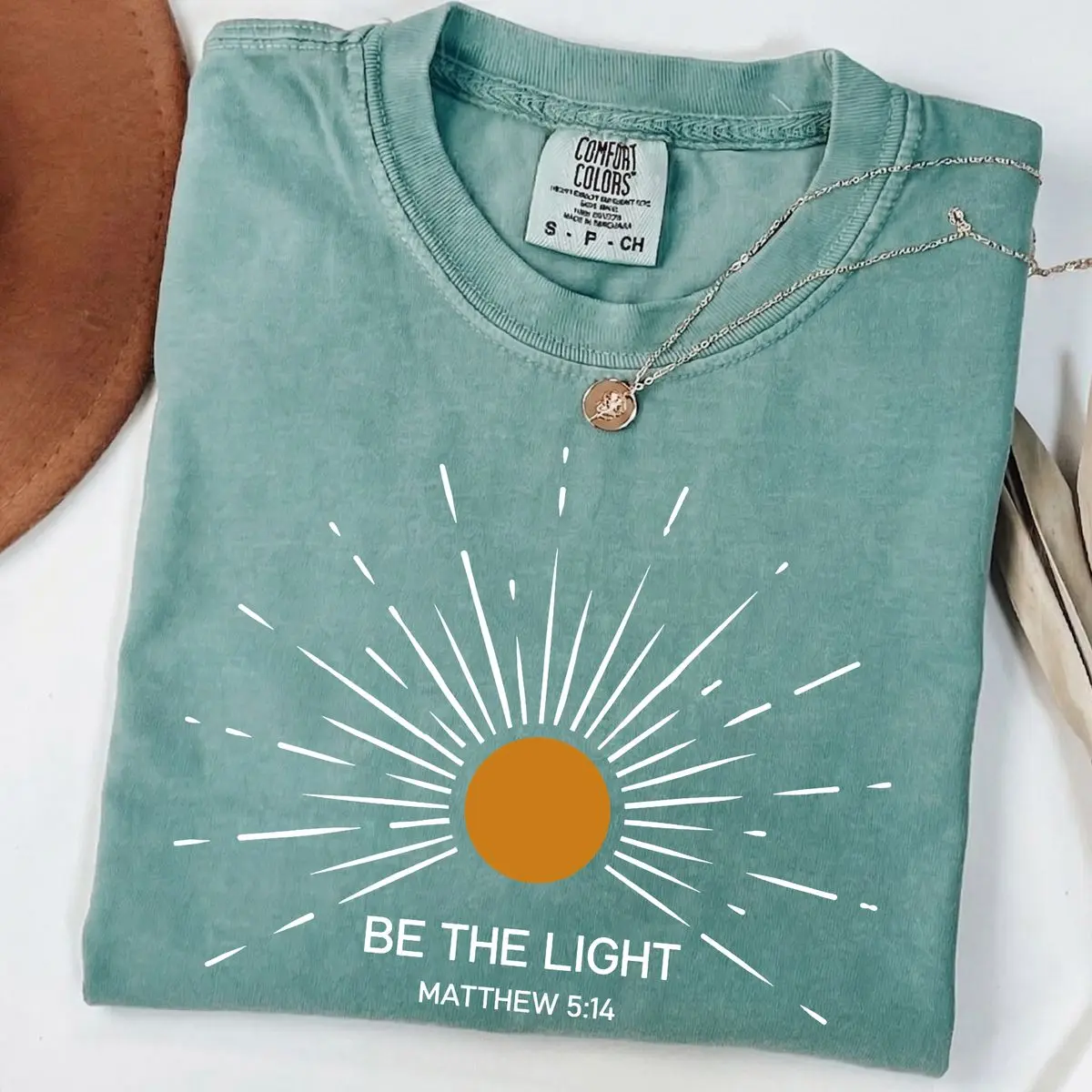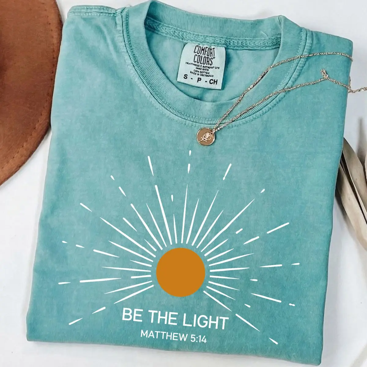 Comfort Colors Be The Light Christian T Shirt, Matthew 514 Bible Verse Tee, Faith Sunburst Shirt, Religious Graphic Tee, Jesus Lover Gift , Unisex Casual Graphic T-Shirts, Gift For Him, Gift For Her