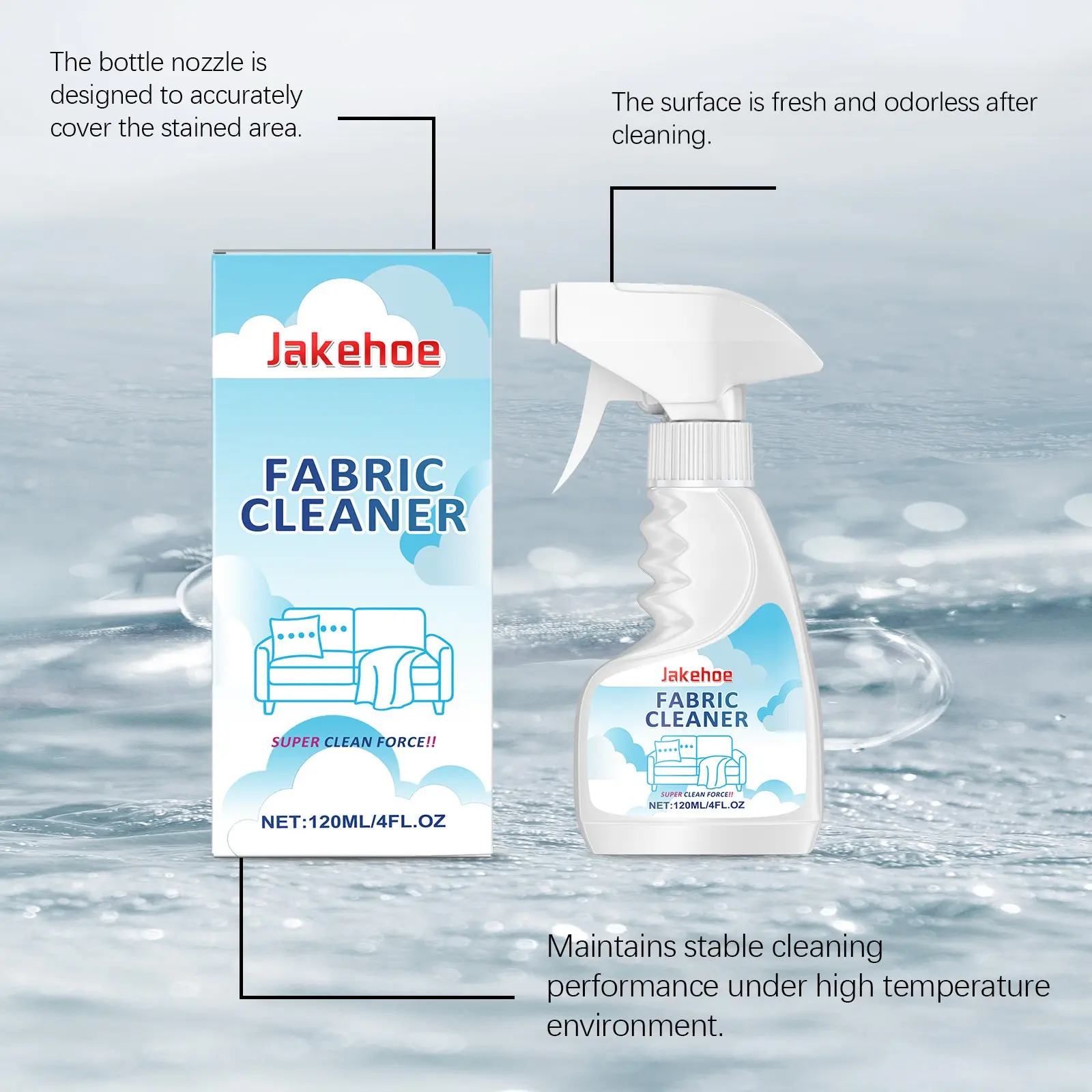 Jakehoe Fabric Cleaner Liquid, Sofa Rug Curtain Stain Remover, Daily Household Foam Cleaning Agent, 120ML, No Pesticide, Non-Prop 65