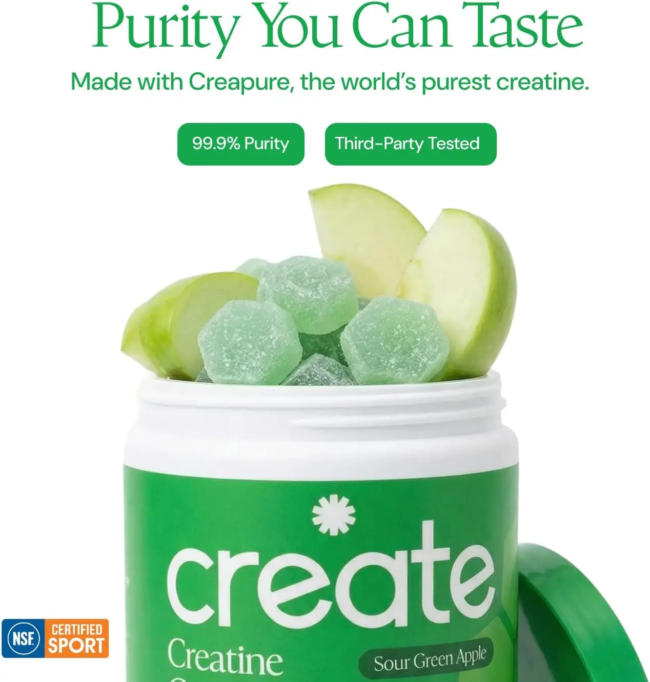 Create Creatine Monohydrate Gummies for Men & Women, Boost Focus, Strength, and Endurance, Anti-Melting Formula, Vegan, Gluten-Free, Non-GMO, 1.5g of Creatine per Gummy (Sour Green Apple)