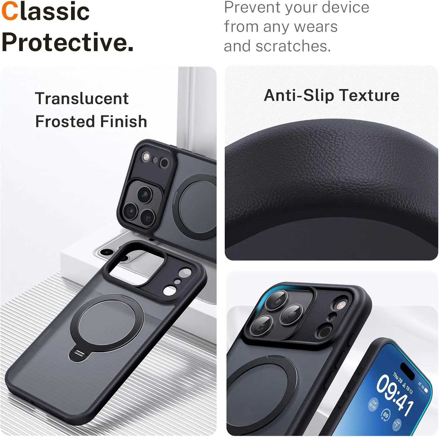 This Peerock 17 Pro Max case features a built-in, non-removable kickstand that offers a wide range of viewing angles. Easily find the perfect view with 360° rotation—it holds securely in both portrait and landscape orientations, even standing completely upright at 90° like a mini-tripod. Made with premium materials and solid construction, the kickstand has passed thousands of test cycles for long-lasting durability and stability.