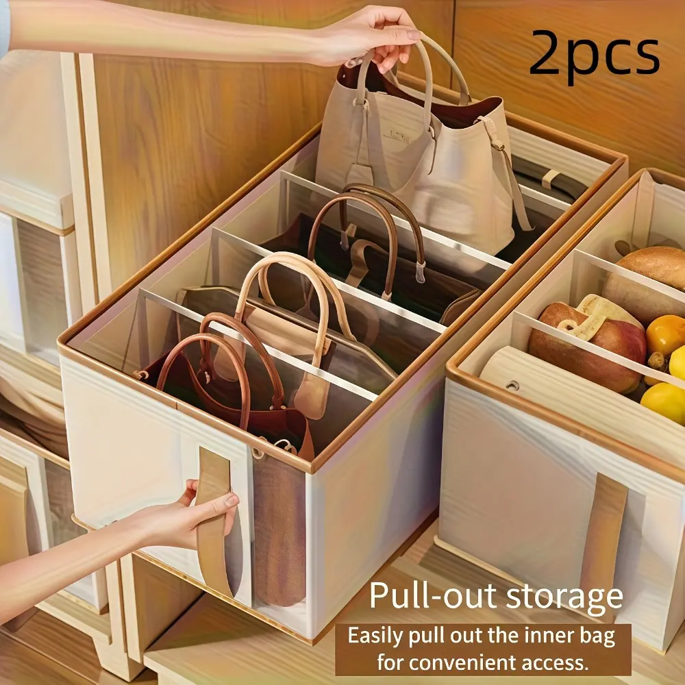 5. Foldable Elegant Oxford Fabric Handbag Storage Box with Transparent Window, Multi-Compartment Organizer for Closet & Wardrobe, Folding Storage Boxes