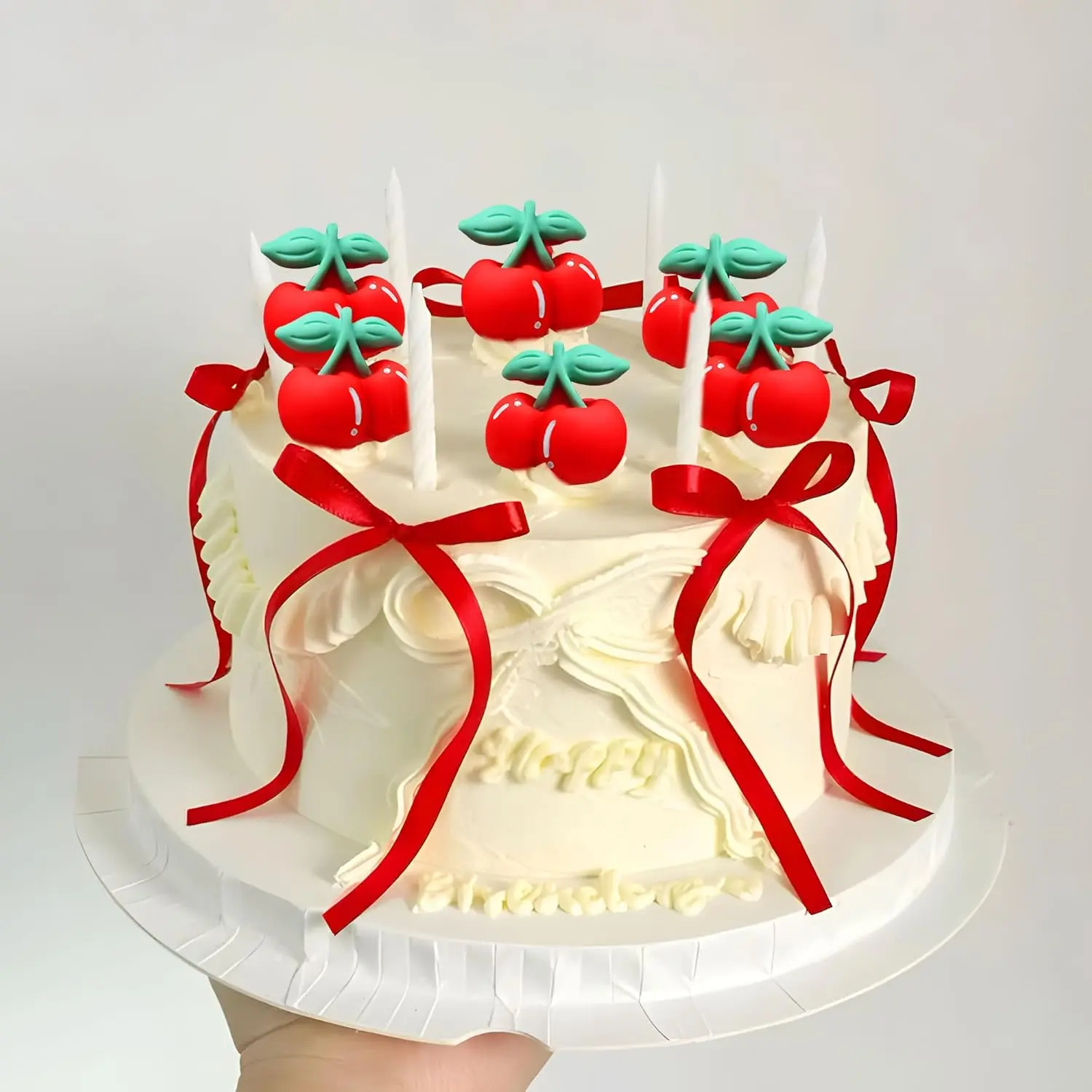 Each set contains 20 Cherry bow birthday cake toppers. They are safe, lightweight, and easy to carry. The unique petal texture design instantly enhances the cake's appearance. Perfect for DIY dessert decorating enthusiasts and professional bakers. Applicable to cakes, cupcakes, and dessert tables.