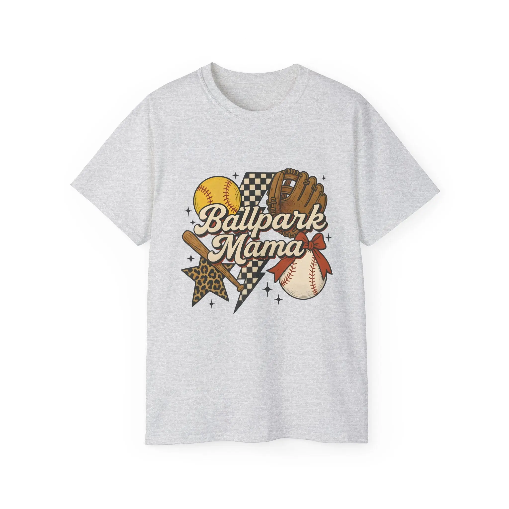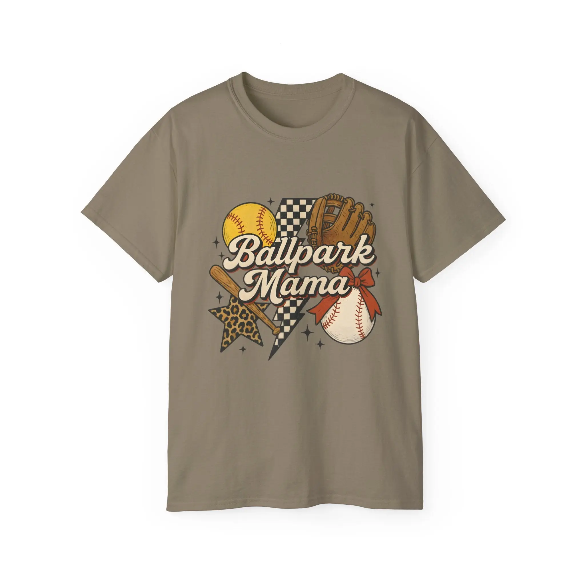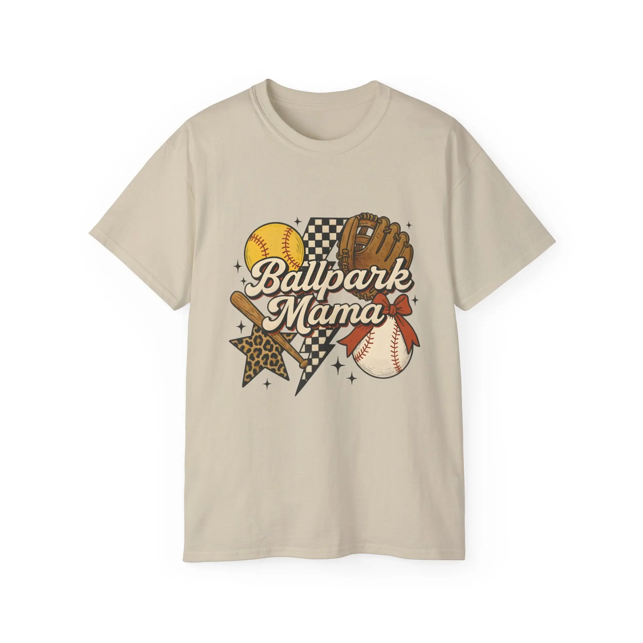 This soft, slightly vintage-feel tee carries the warm chaos of game day: cracked leather mitt, scuffed baseball, and a sunny softball nestled around the hand-lettered "Ballpark Mama" script. It sits easy on the body with a relaxed, roomier cut that lets you layer a hoodie or tie at the waist after the last inning. The thicker, earth-toned knit shows tiny natural flecks that give the shirt an authentic, worn-in look — like the uniforms you’ve cheered in for years. Wear it to dugouts, concession lines, or backyard practices. It’s made from responsibly produced US cotton, finished with a ribbed collar that keeps its shape and a tear-away label for comfort, so you can focus on the game and the kids, not your shirt.