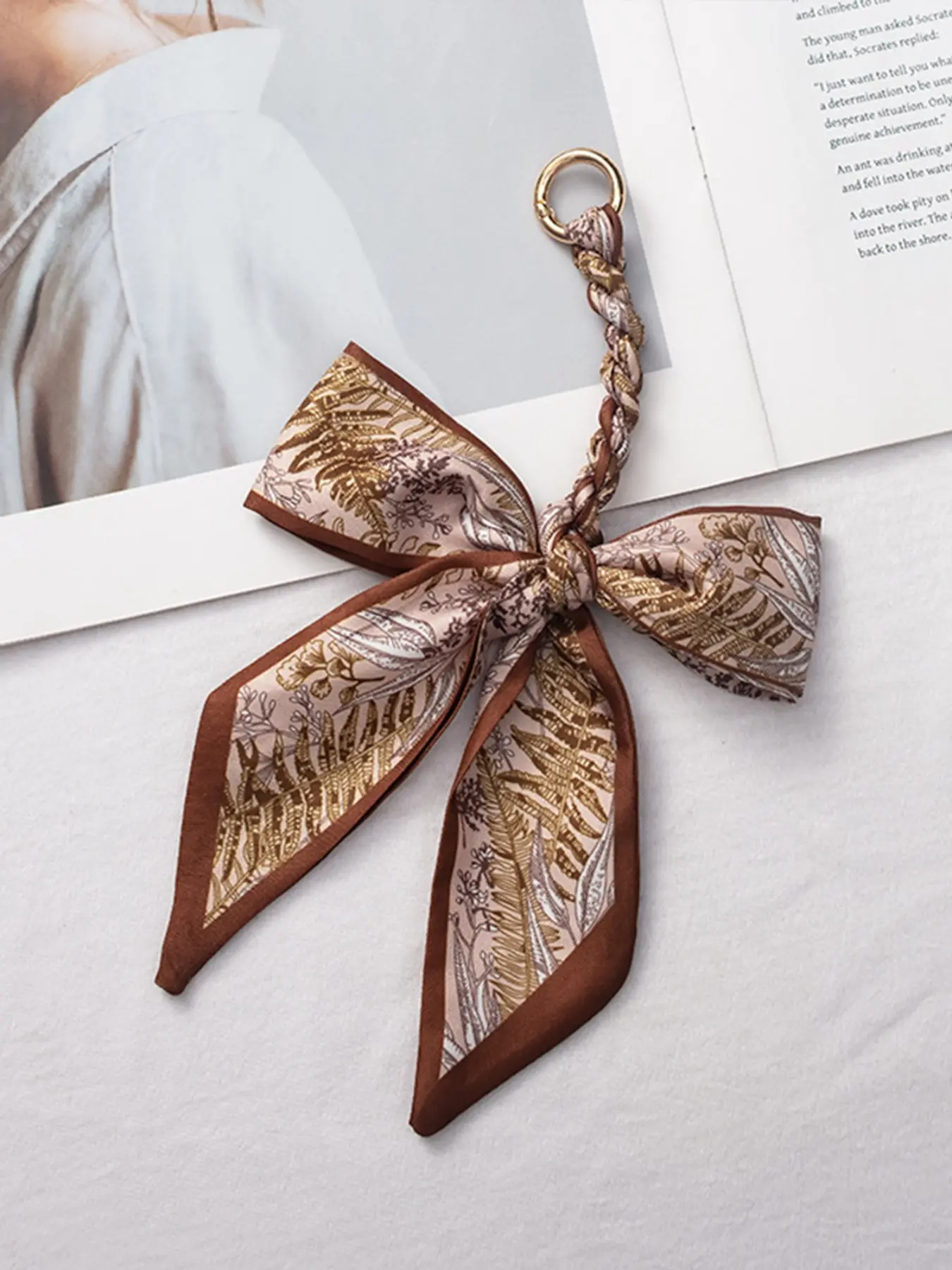 Elegant Braided Silk Scarf Bow Bag Charm, Luxury Handbag Pendant Accessory, Cute Aesthetic Bag Decor, Multi-use Keychain & Phone Charm, Perfect Birthday Christmas Mother's Day Gift for Women Girls, Trendy Bag Accessory for Tote Backpack Handbag