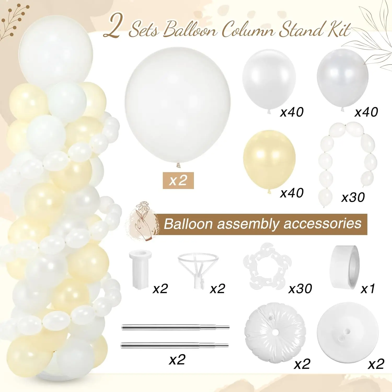 Pearl White Balloon Column Stand Kit 193pcs Dual Set Adjustable Tower Party Decor