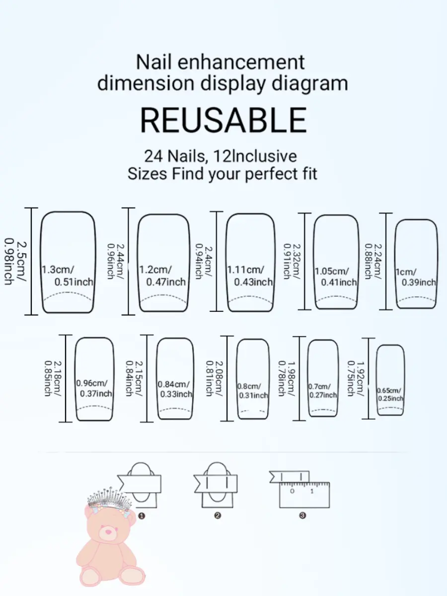 Long White Teddy Bear/Bow French Tip Design- Luxury Nail Set