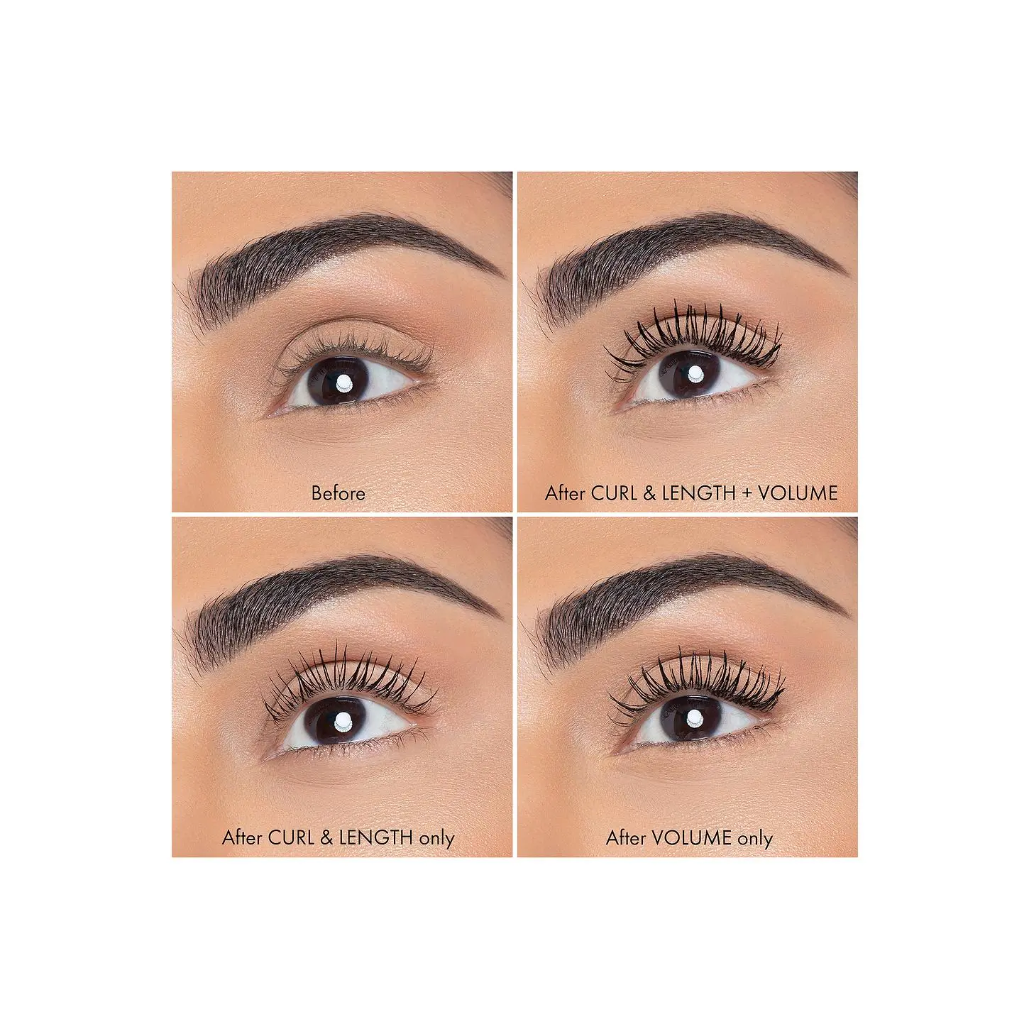 ·One swipe for dramatic curl and length: Continuing to comb from the base of your lashes to the end, apply the "Curl & Length" side for extended drama.