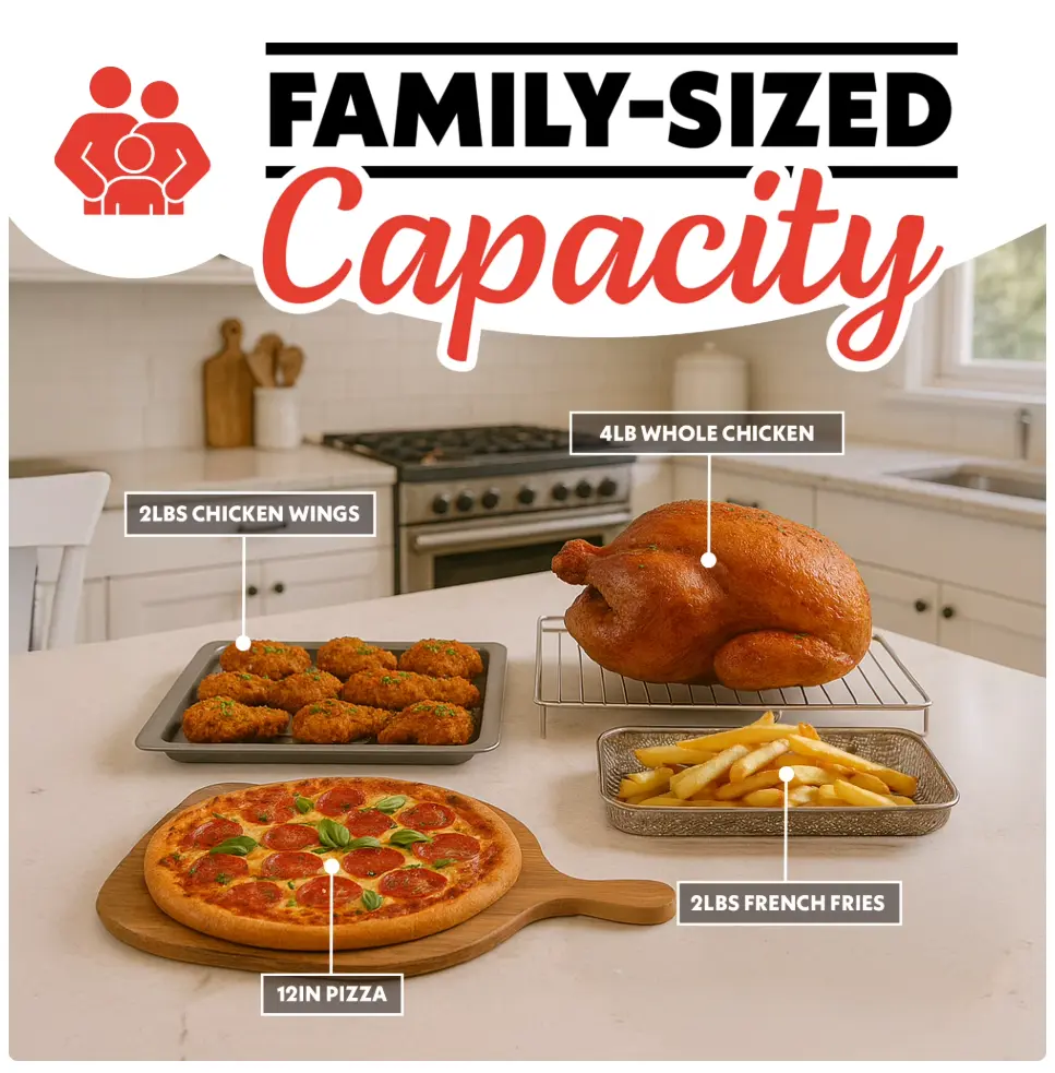 ·Fits a 12 inch pizza, 6 slices of toast, or a whole chicken