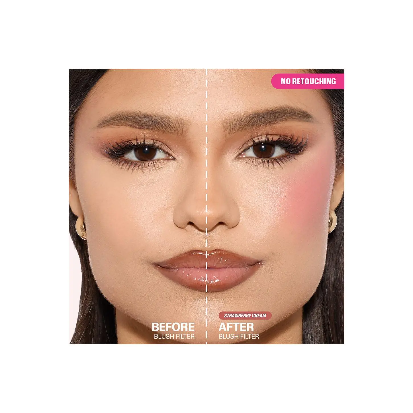 ·A pop of color with a filtered finish! Blush Filter is a lightweight liquid blush with buildable pigments and finely milled micro-pearls for a soft-focus, high-impact glow.