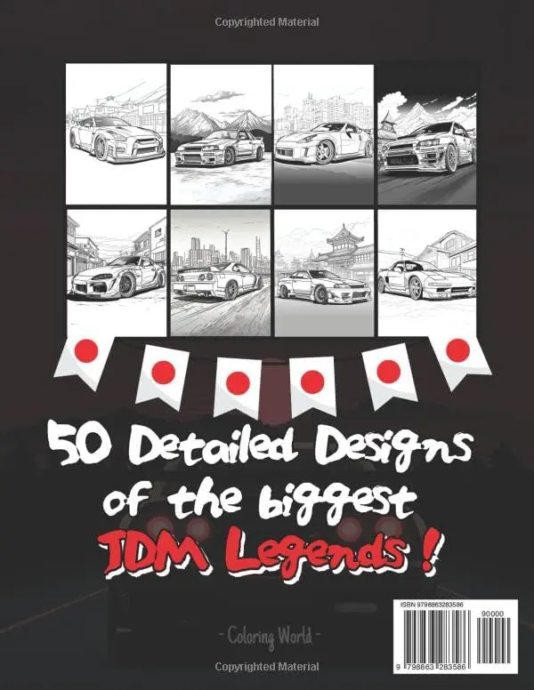 Dive into the world of JDM Legends with this unique coloring book. It showcases iconic Japanese automobiles from the 80s, 90s, and recent models. Perfect for car lovers, it features 50 detailed designs of legendary Japanese cars. From classics to widebody, turbo drift machines, this book is a must-have for any enthusiast.
