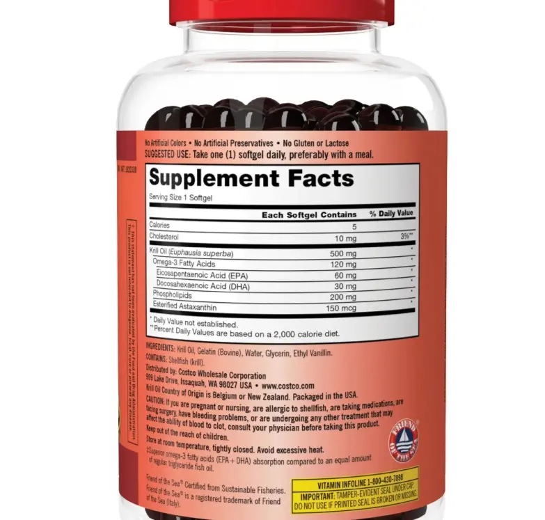 ✨ Kirkland Signature Krill Oil 500mg, 180 Softgels is a convenient supplement for your health needs. Each softgel contains 500mg of krill oil, providing a substantial dose in every serving. Perfect for those looking to incorporate krill oil into their daily routine.