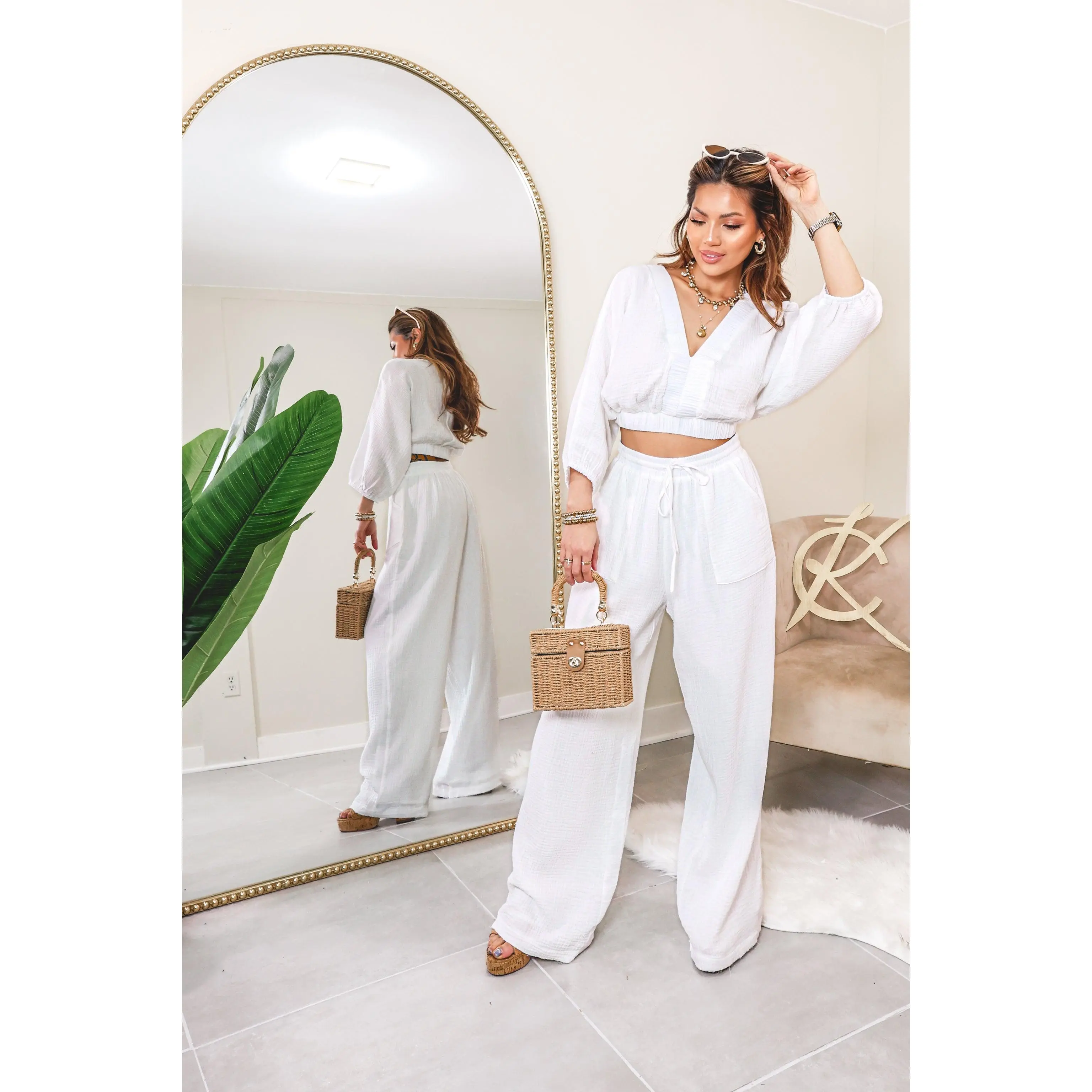 Elevate your wardrobe with our Linen Days Gauze Pants! Made with lightweight gauze material, these white pants offer a relaxed fit and an adjustable drawstring at the top for ultimate comfort. The pocket detail adds functionality to the long, stylish design. Perfect for any occasion, these pants are a must-have for any fashion-forward individual.